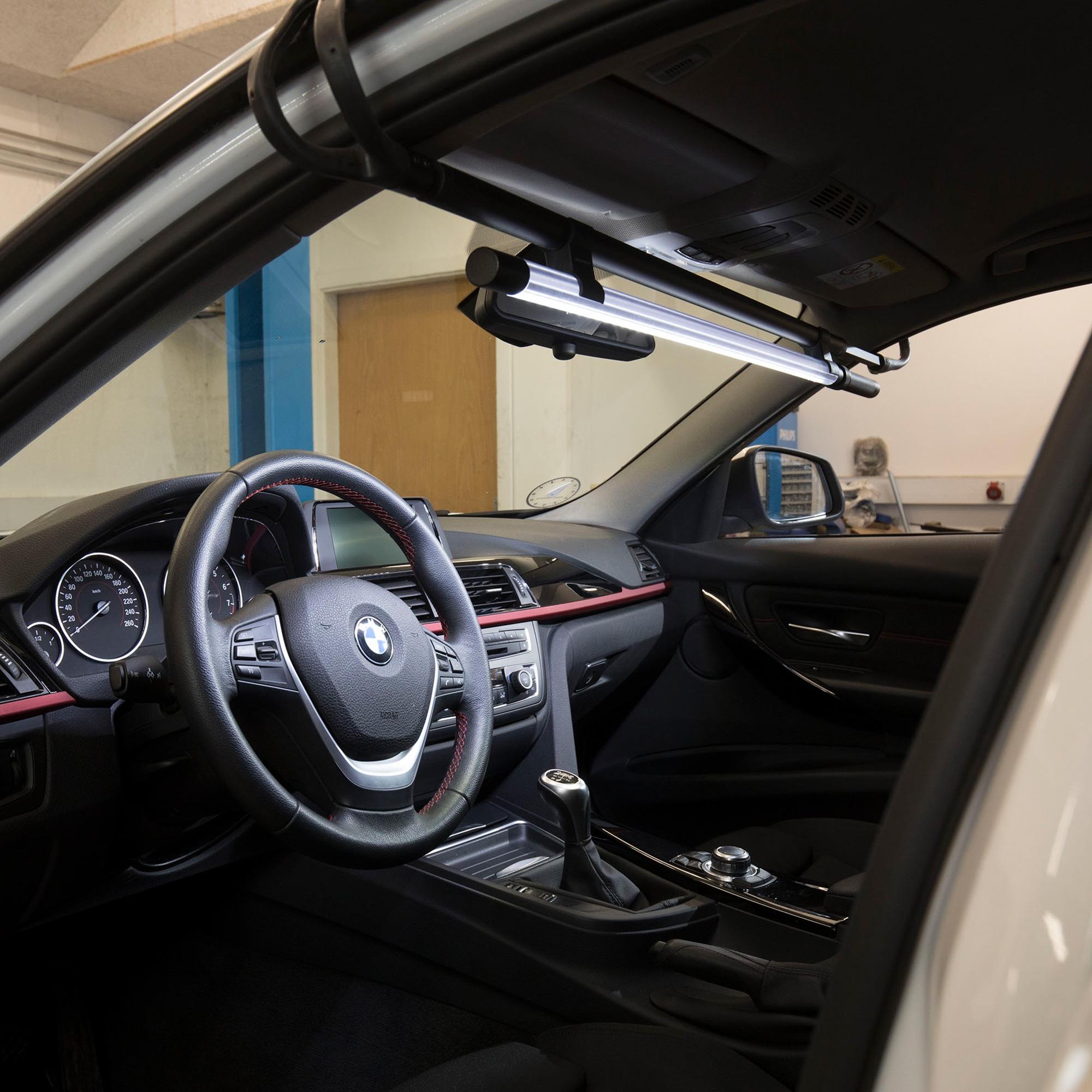 Im Fahrgastraum kann die BONNET LIGHT als Arbeitsleuchte verwendet werden, entweder an der Teleskophalterung oder mit flexiblem Arm und Saugnapf an der Windschutzscheibe montiert. Um die Leuchte überall im oder unter dem Wagen zu montieren ist verschiedenes Zubehör erhältlich.