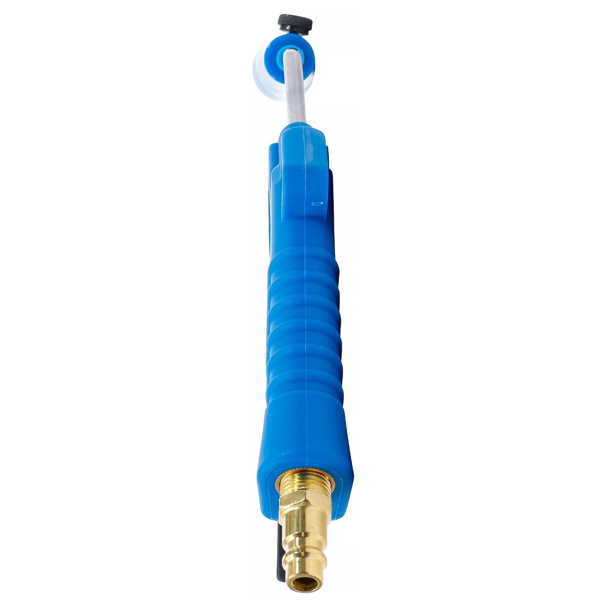 Diese spezielle Ausblaspistole wird an die Druckluftversorgung angeschlossen und dient, dank des integrierten Pinsels, der tiefgehenden Reinigung des Arbeitsbereiches und zum Ausblasen von Bauteilen. Sie ist auch besonders gut zum Entstauben und Reinigen von schwer zugänglichen Stellen am Fahrzeug geeignet.