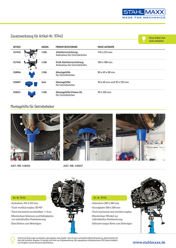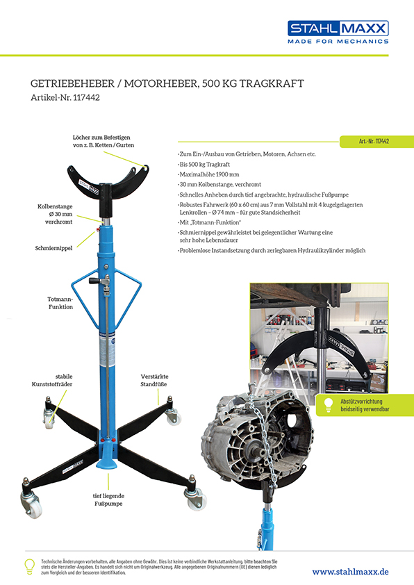 Weiterführende Links zu "Getriebeheber / Motorheber, 500 kg"