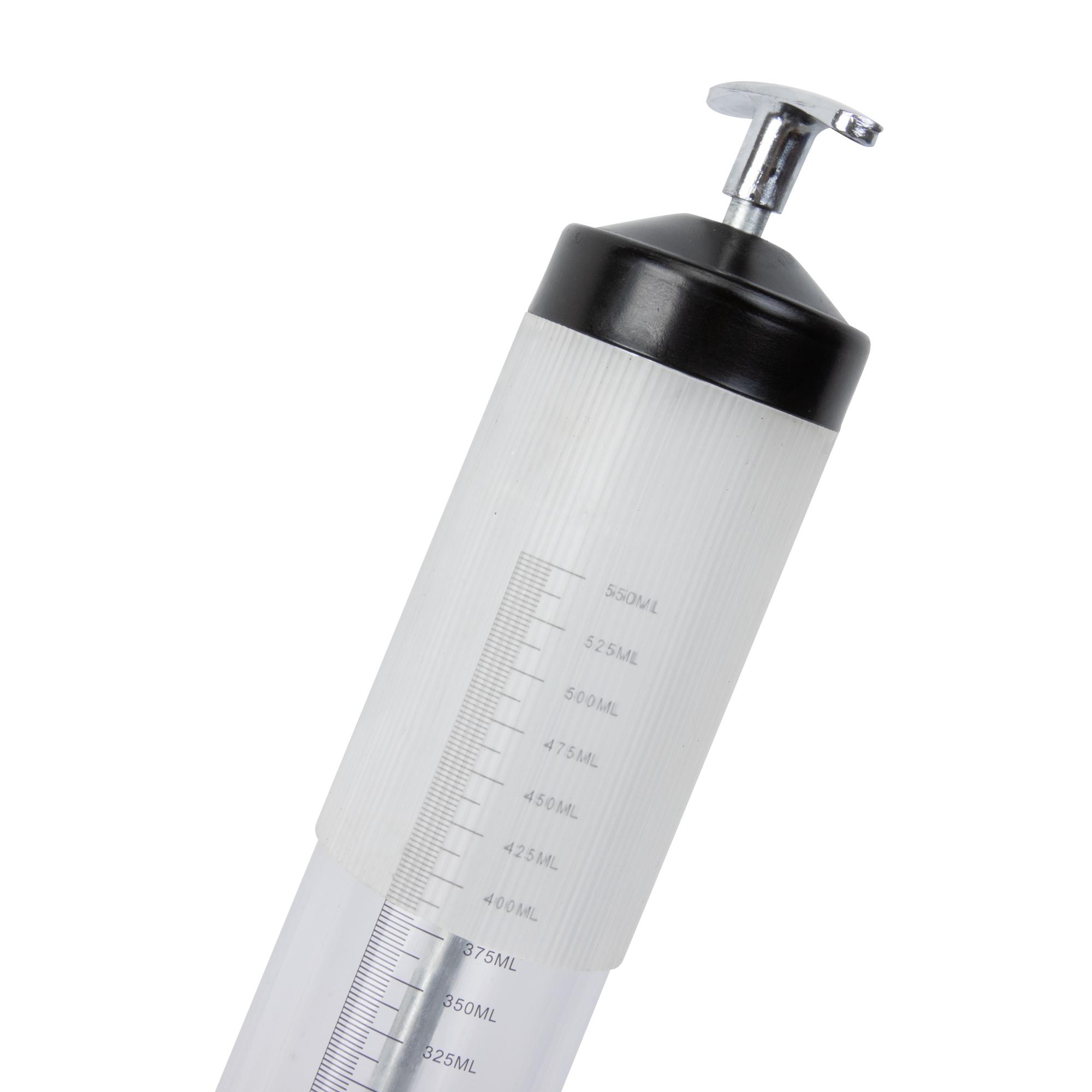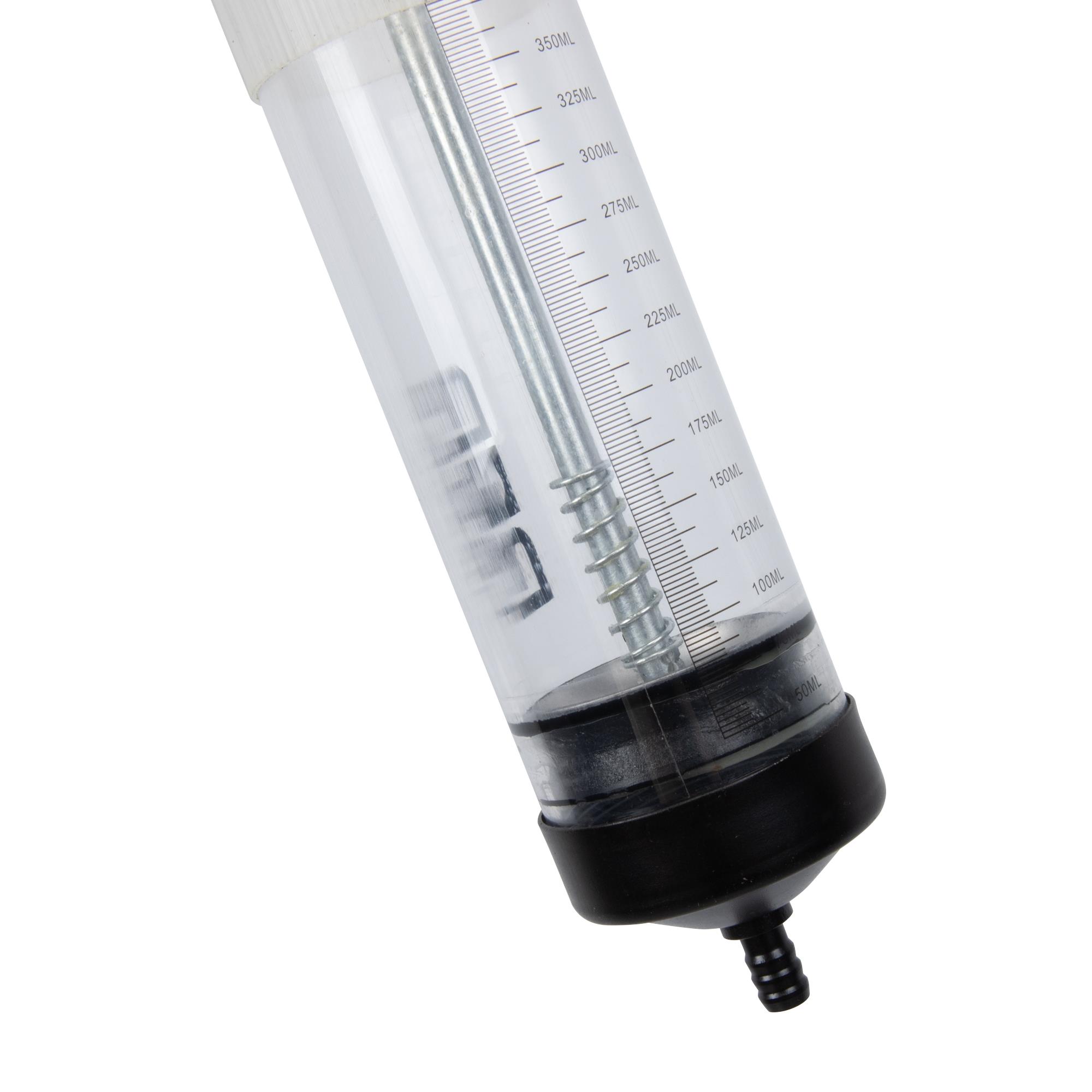 Die hochwertige Flüssigkeits-Handpumpe hat ein Fassungsvermögen von 500 ml und eignet sich, dank des umfangreichen Lieferumfangs, zur Befüllung und Entleerung von Getrieben, Differentialen, Behältern und Kleinmotoren.