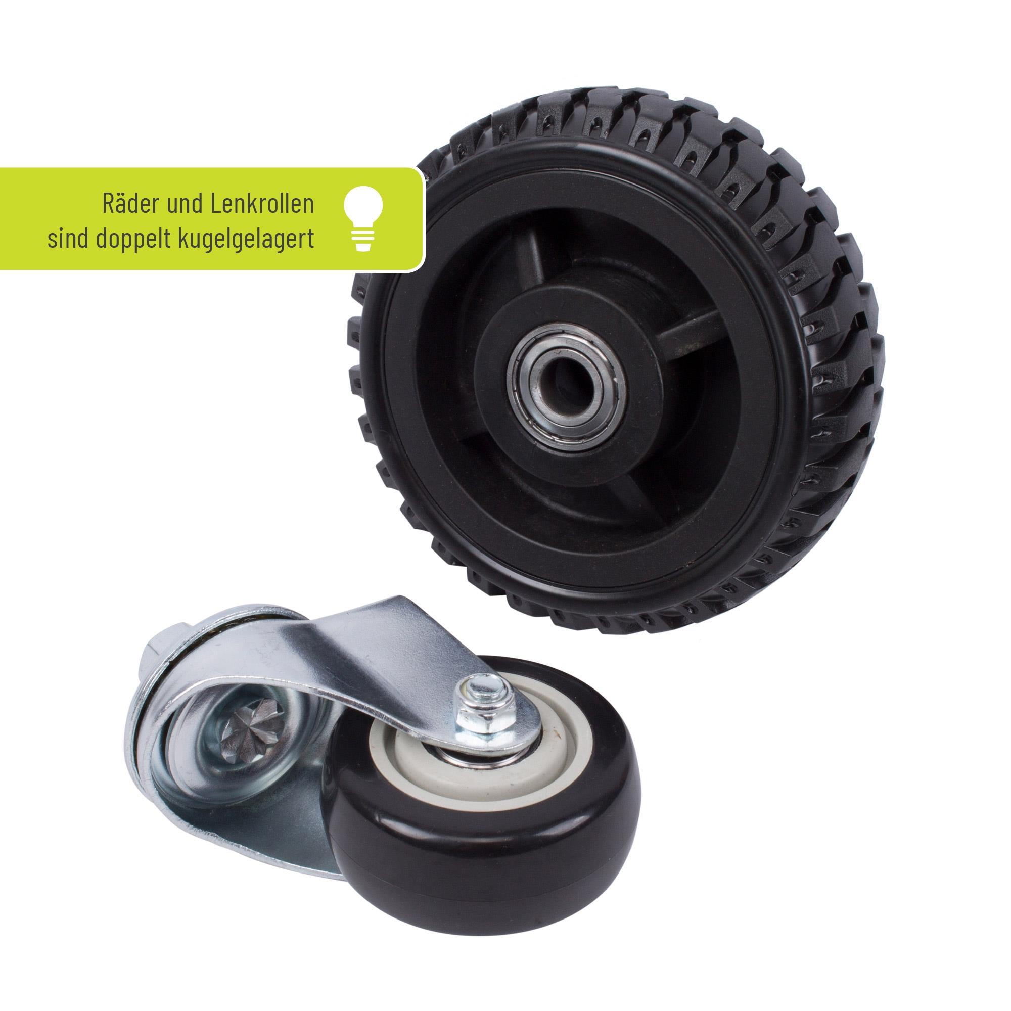 ✔ 4 kugelgelagerte Räder, davon 2 Lenkrollen