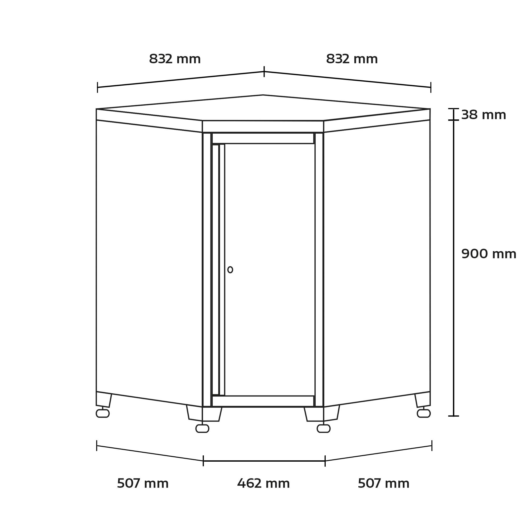 - Maße inkl. Arbeitsplatte: 832 x 938 x 507 mm (Breite x Höhe x Tiefe)