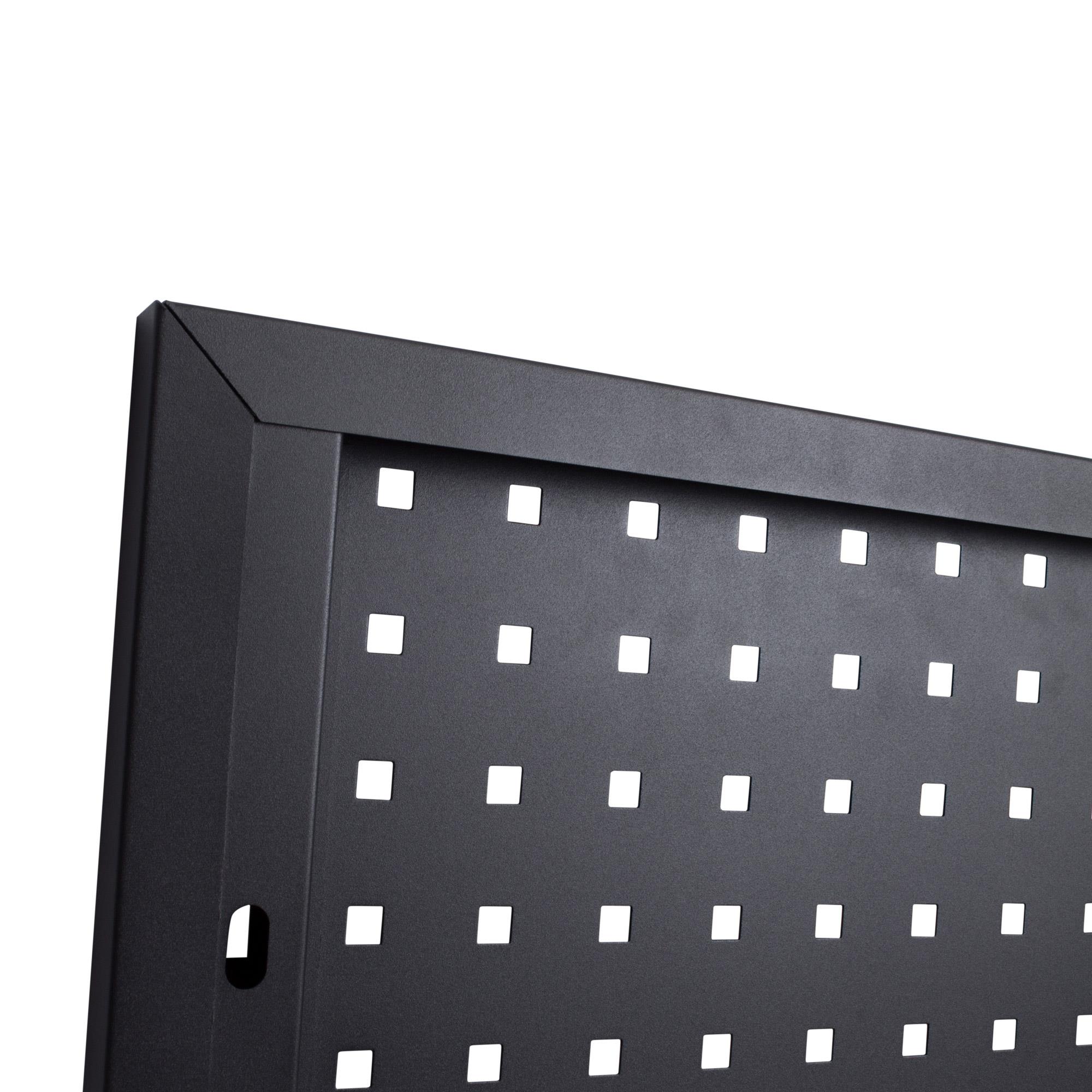 Durch Umkantung der Lochwand gewinnt diese an extra Stabilität, außerdem sind keine Befestigungsschrauben sichtbar. Die Lochwand ist die perfekte Ergänzung zu weiteren Produkten der Werkstattserie von REPTOOLS.