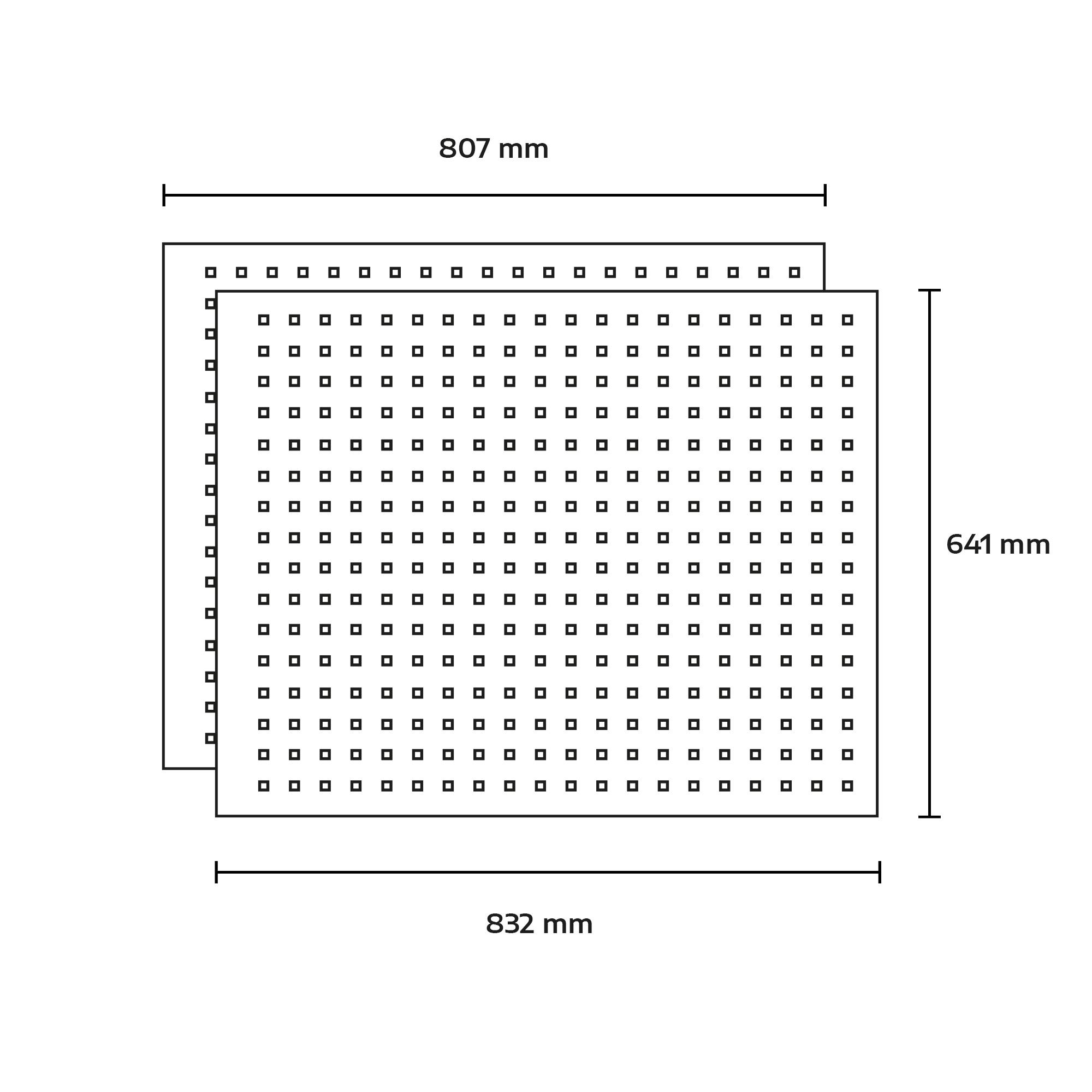 - Maße: 807 x 641 x 25 mm (Breite x Höhe x Tiefe)