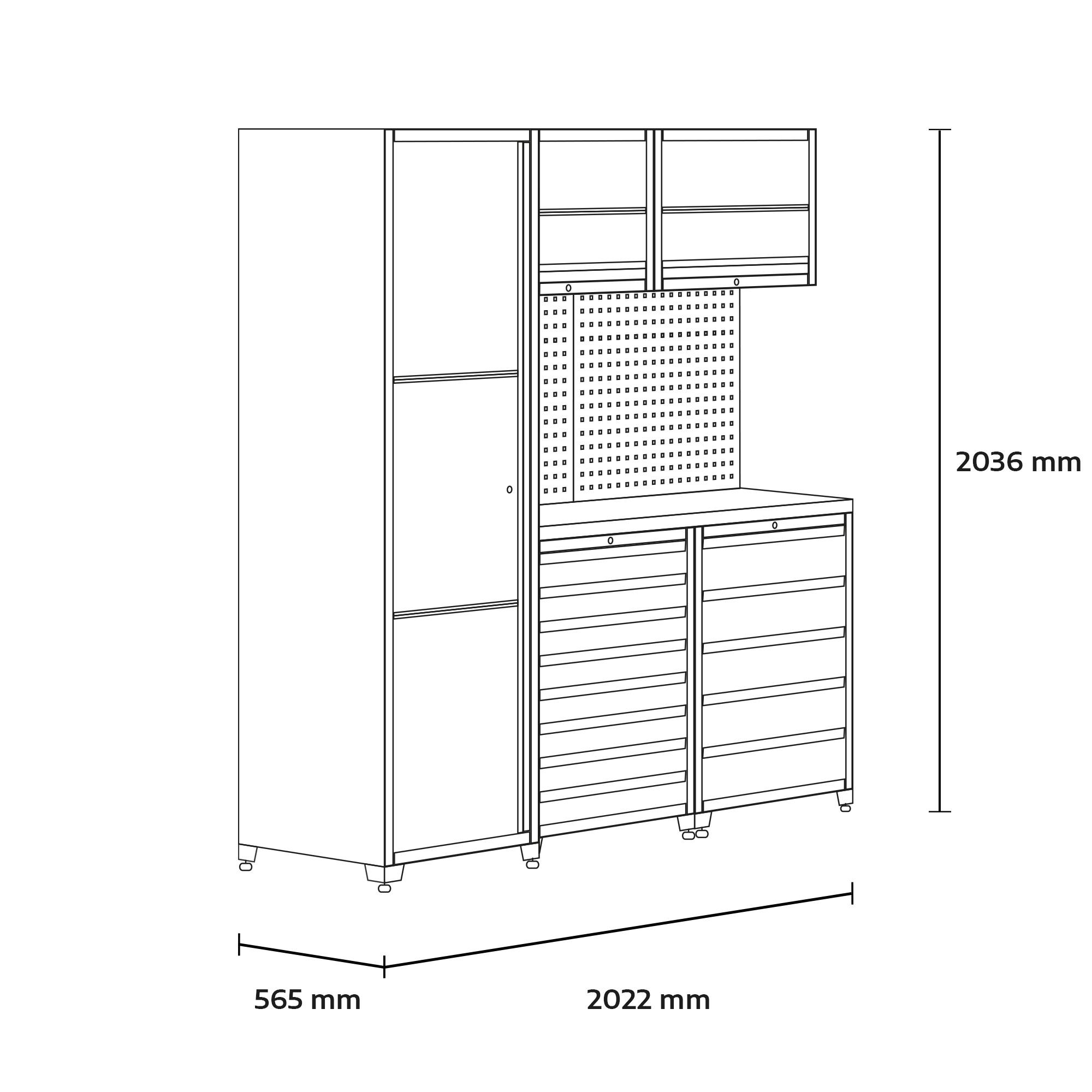 - Maße: 2022 x 2036 x 565 mm (B x H x T)