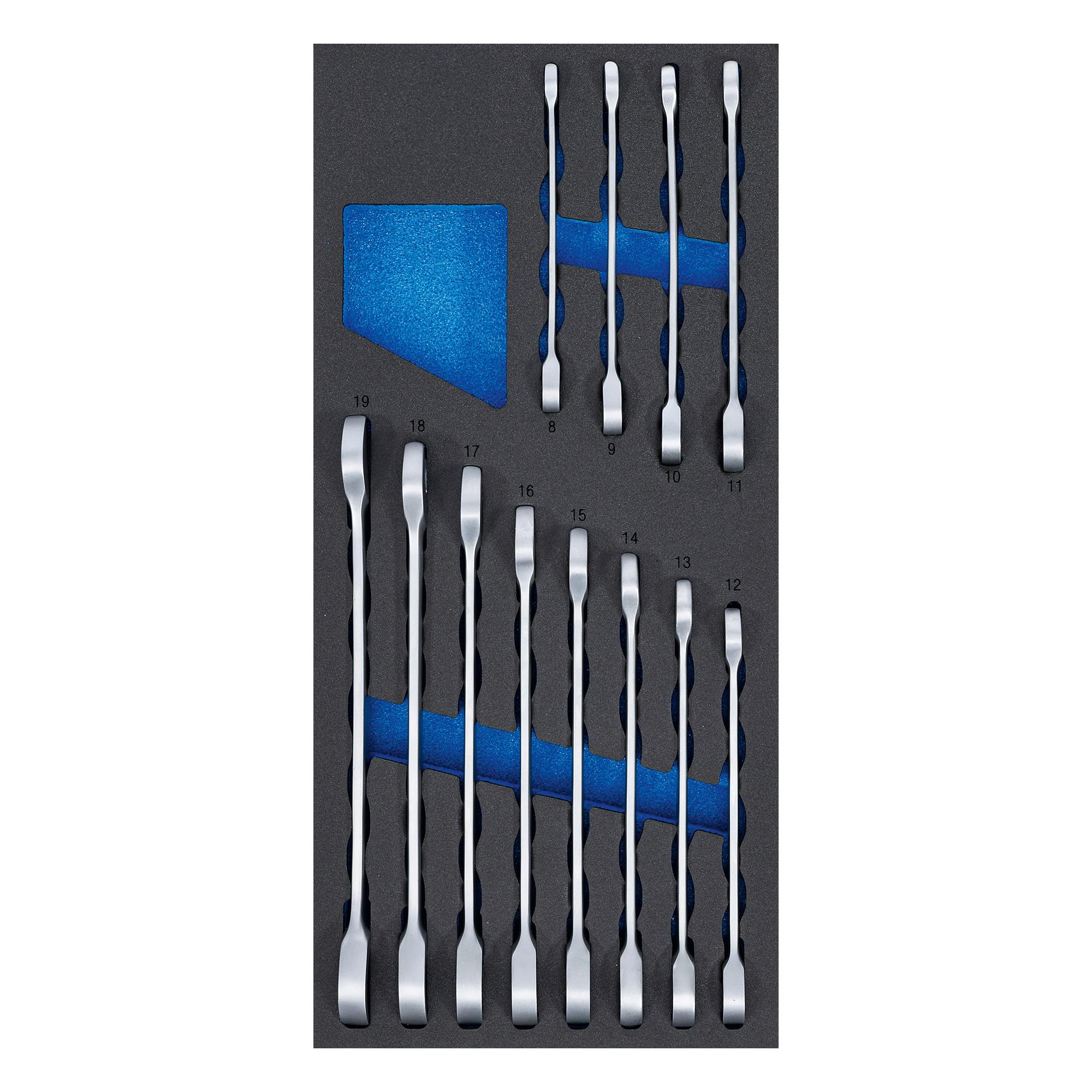 "Ratschenring-Maulschlüssel-Satz, 12-teilig, SW 8 – 19 mm, mit 1/3-Werkstatteinlage"