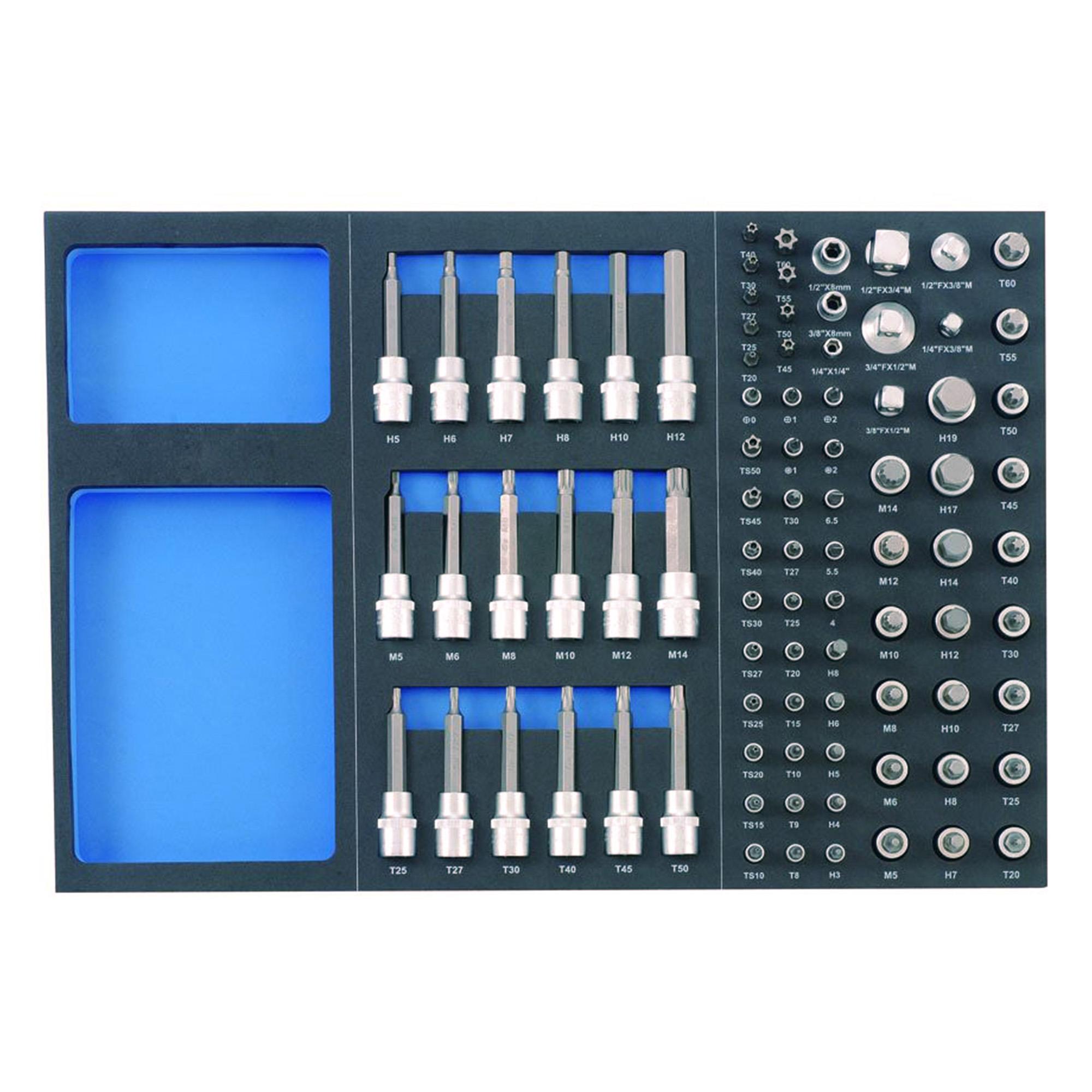 - 6 Einsätze, Innensechskant, lang: 5, 6, 7, 8, 10, 12 mm