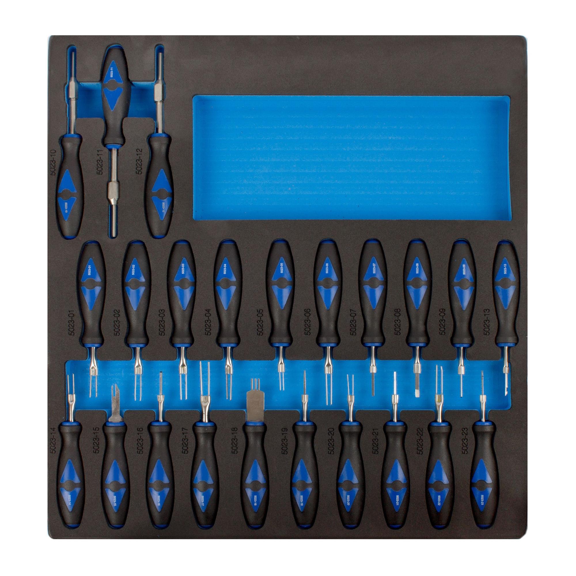 Dieses Werkzeug-Set enthält 23 Entriegelungswerkzeuge zur einfachen und sicheren Entriegelung aller gängigen Kontaktsysteme.