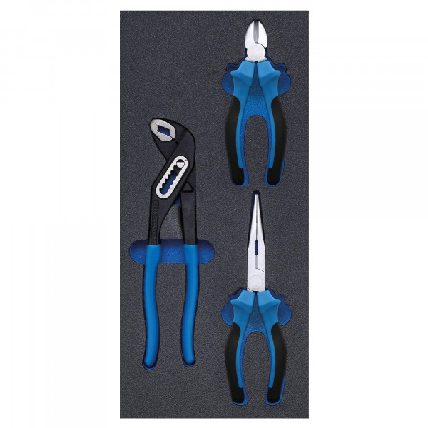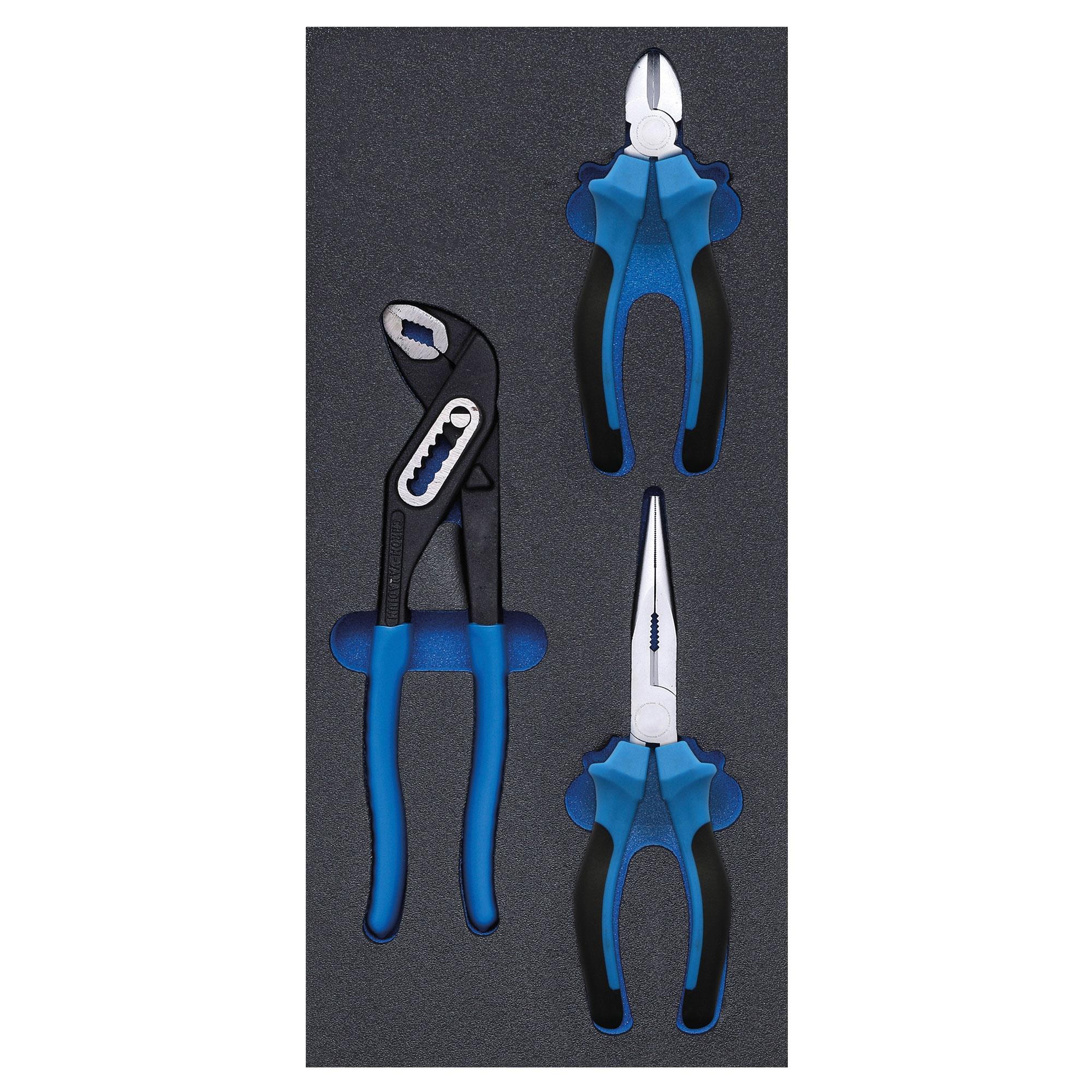 3-teiliges Zangen-Set mit 1/3 Werkstatteinlage aus Schaumstoff.
