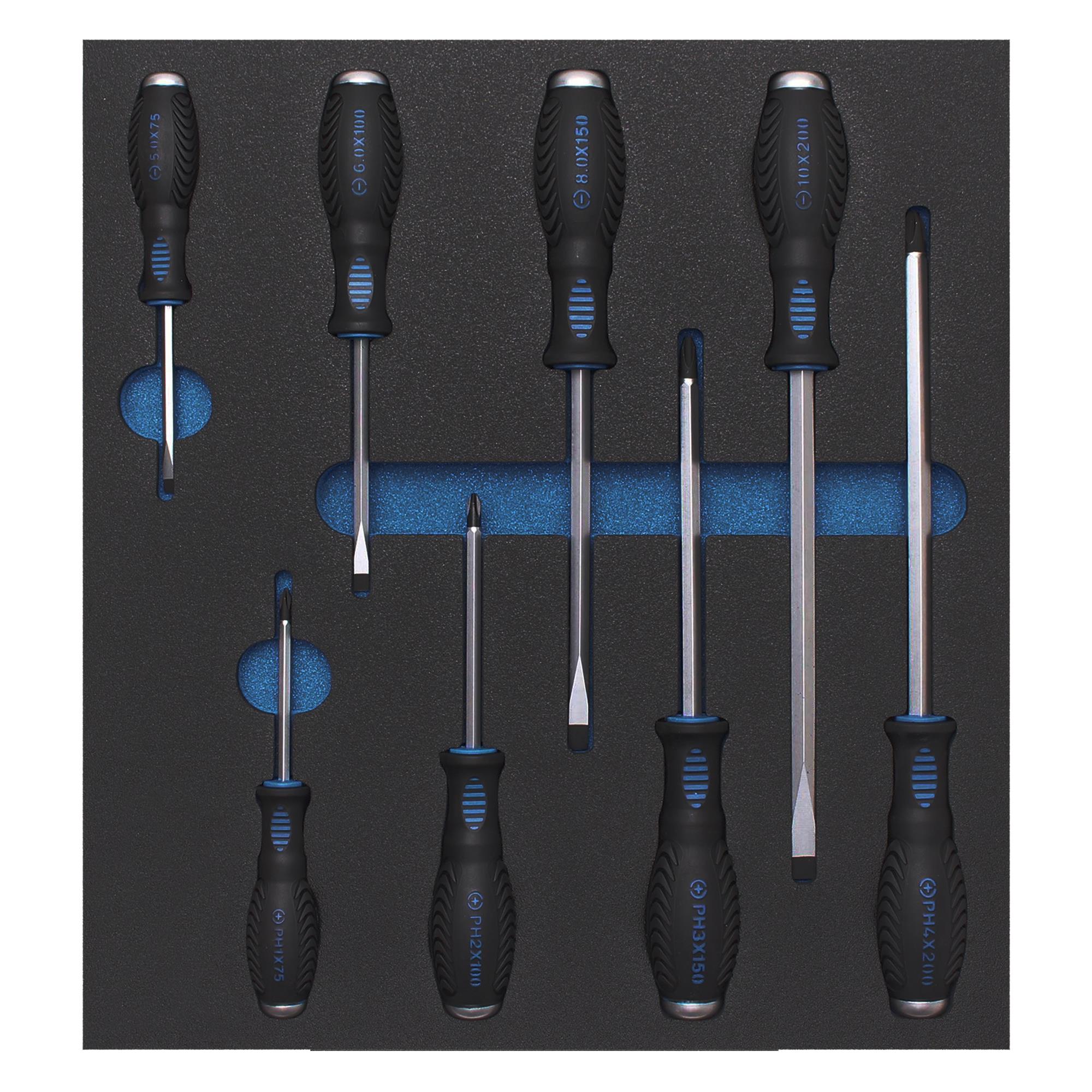 Kreuz- und Schlitz-Schraubendreher, 8-tlg., in 2/3 Schaumstoffeinlage (Art.-Nr.: 112601)