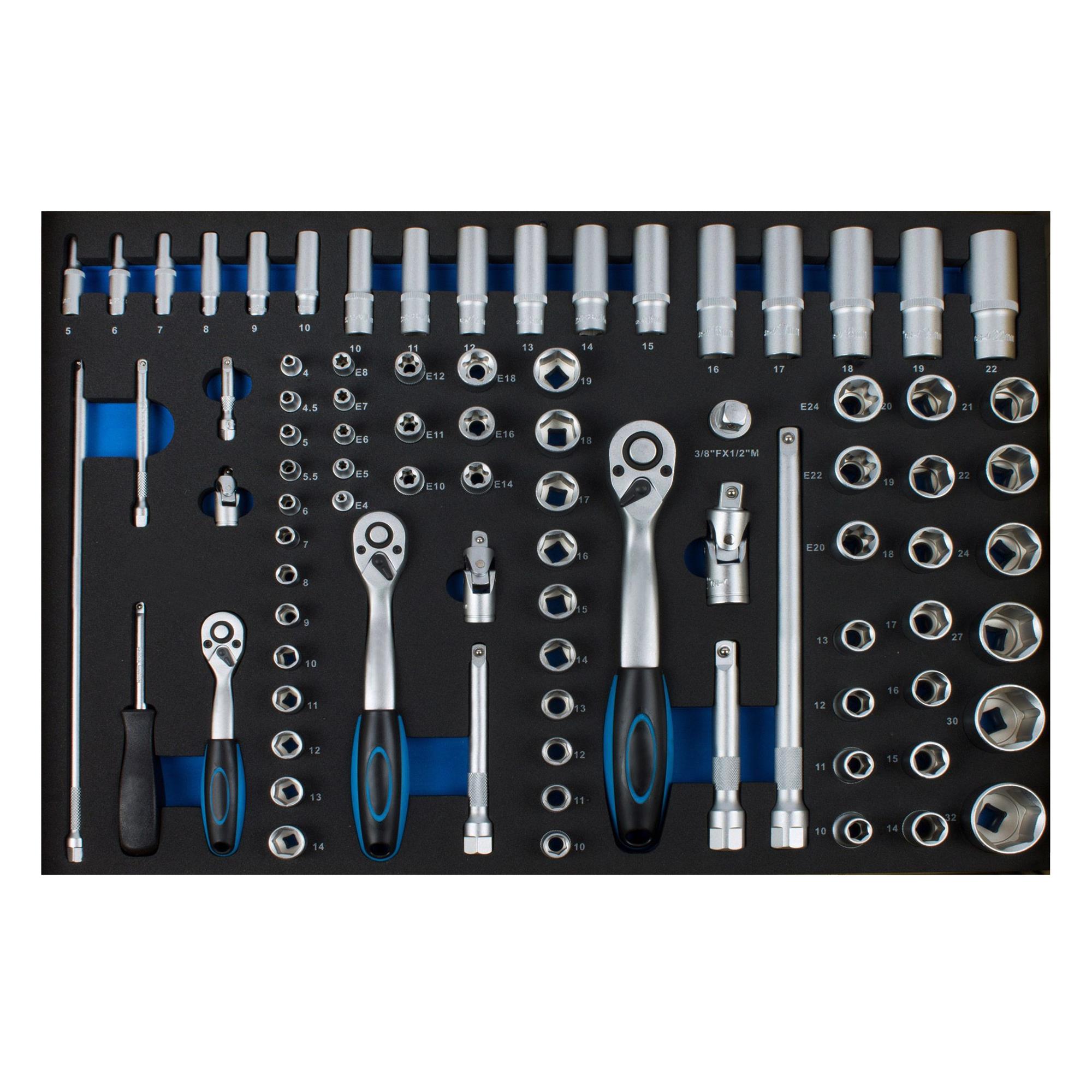 Steckschlüssel-Satz, 85-tlg., in 3/3 Schaumstoffeinlage (Art.-Nr.: 34002)