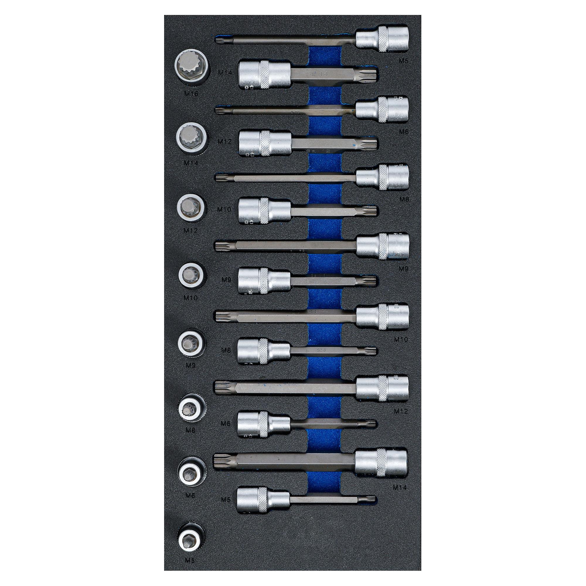 - Art.-Nr. 116066 Werkstattwageneinlage 1/3: Bit-Einsatz-Satz | Antrieb Innenvierkant 12,5 mm (1/2") | Innenvielzahn (für XZN) | 22-tlg.