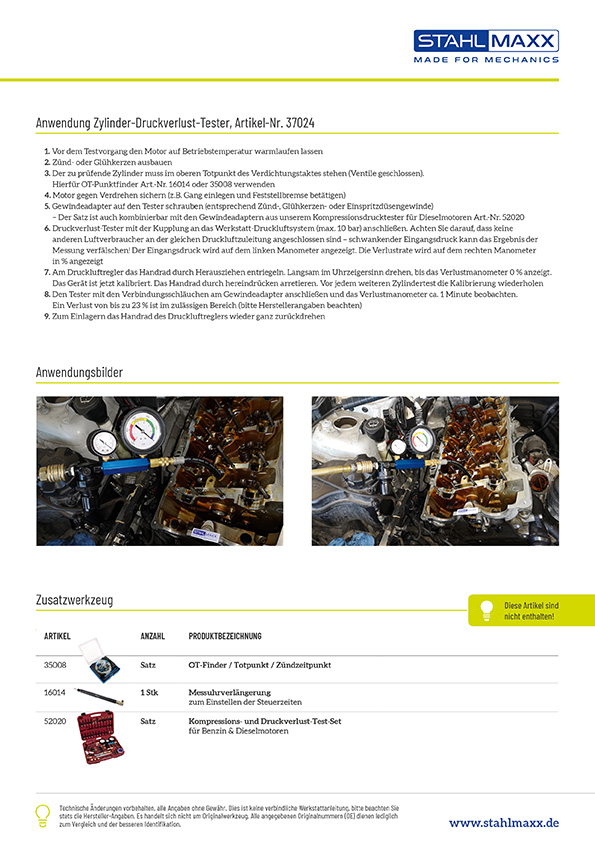 Weiterführende Links zu "Zylinder-Druckverlust-Tester"