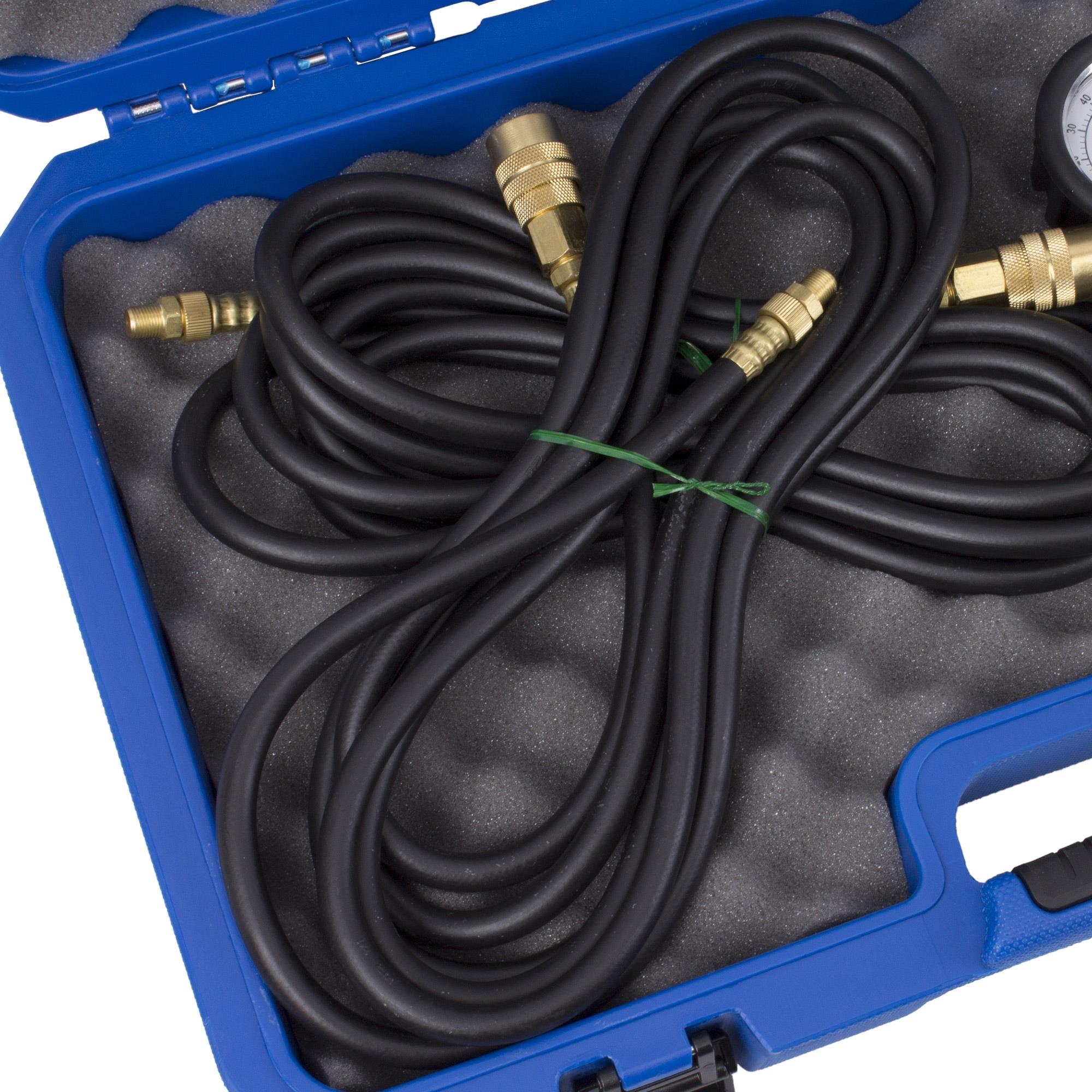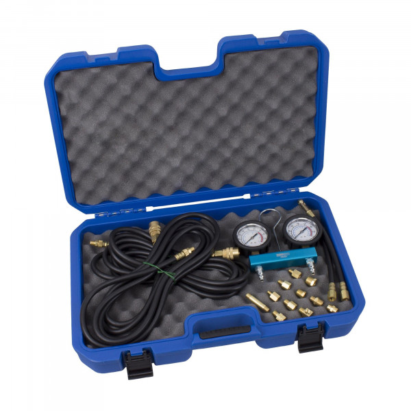 Ermöglicht die genaue Prüfung und Diagnose von Fehlern im Ölsystem im Motor und Getriebe. Durch extra lange Verlängerungsschläuche ist die Druckmessung während der Probefahrt unter Realbedingungen möglich. Öldruckmessung des Motors an allen Modellen möglich.