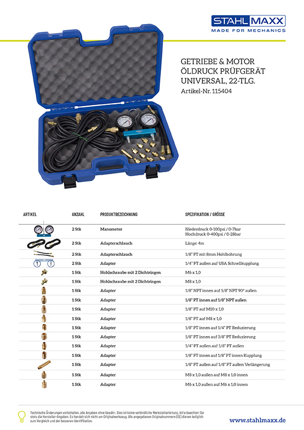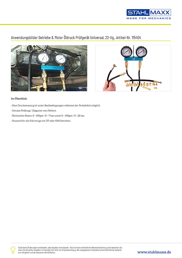 Weiterführende Links zu "Getriebe und Motor Öldruck Prüfgerät, Universal, 22-tlg."