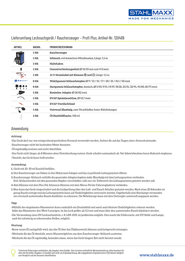 Art.-Nr. 120468 Lecksuchgerät / Raucherzeuger / Smoker – AusführungProfi