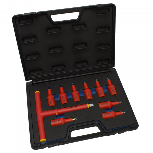 "VDE-Bit-Einsatz-Satz, Antrieb Innenvierkant 12,5 mm (1/2"), T-Profil (für Torx) T20 - T55, 10-tlg."