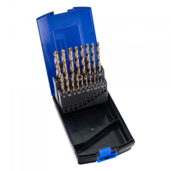 "Professioneller Spiralbohrer-Satz, HSS-E Cobalt 5%, 3 Kant-Schaft, bis 1300N/mm² 19-tlg.1-10 mm"