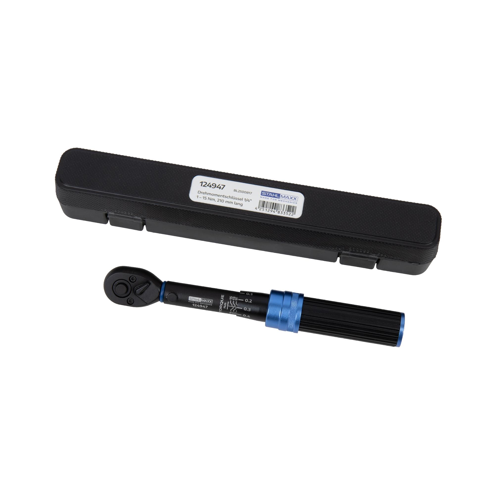 1 x Stahlmaxx Profi-Drehmomentschlüssel 1/4", 1 – 15 Nm, Links-/Rechtsanzug, 72 Zähne, 3 % DIN, ISO