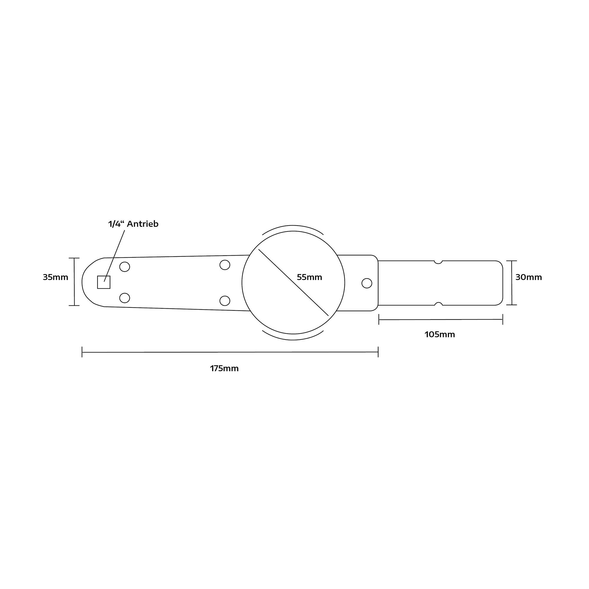 Dient außerdem dem Einstellen der Vorspannung an Lagern bei der Getriebeinstandsetzung, Motoreninstandsetzung oder Reparatur der Lenkung. Auch verwendbar als Drehmomentschlüssel mit Schleppanzeiger.