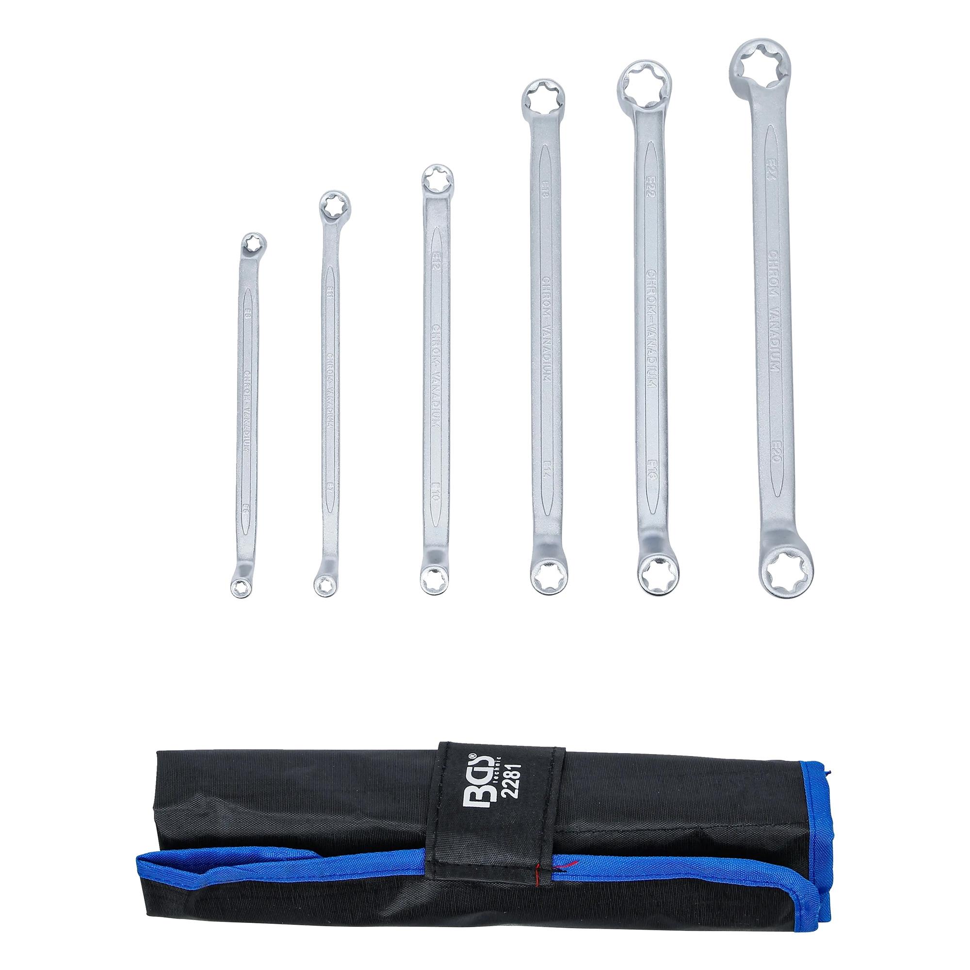 Doppelringschlüssel-Satz, 6-tlg., E-Profil, tief gekröpft, E6–E24