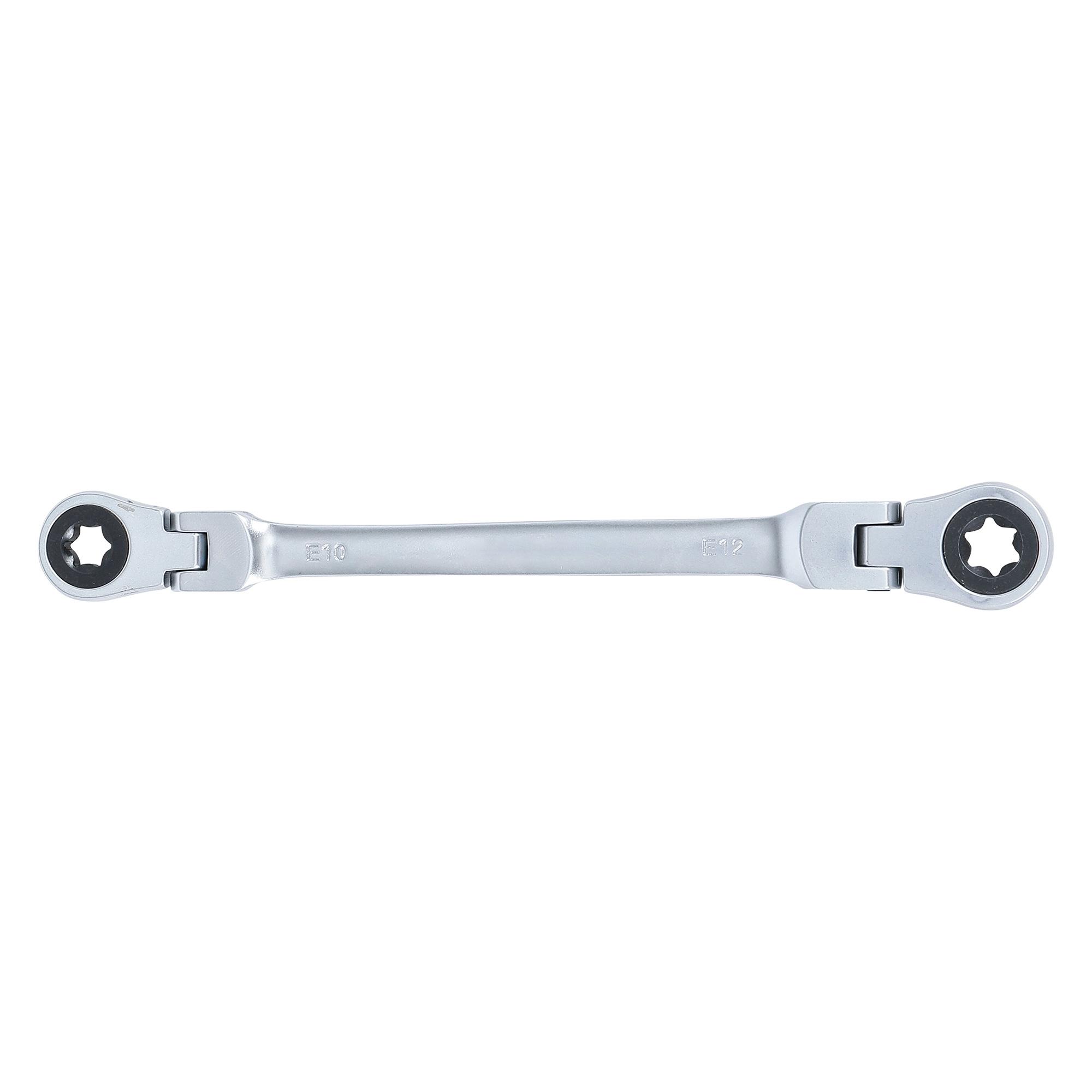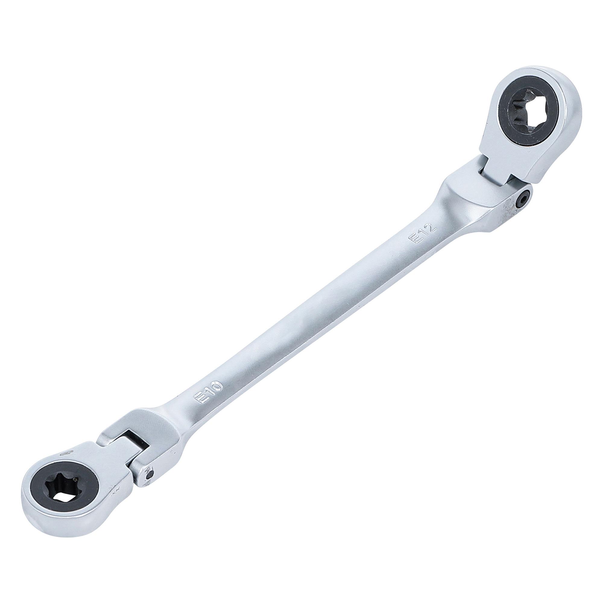 "Doppel-Ratschen-Ringschlüssel, abwinkelbar, mit E-Profil Ringköpfen, SW E10 x E12"