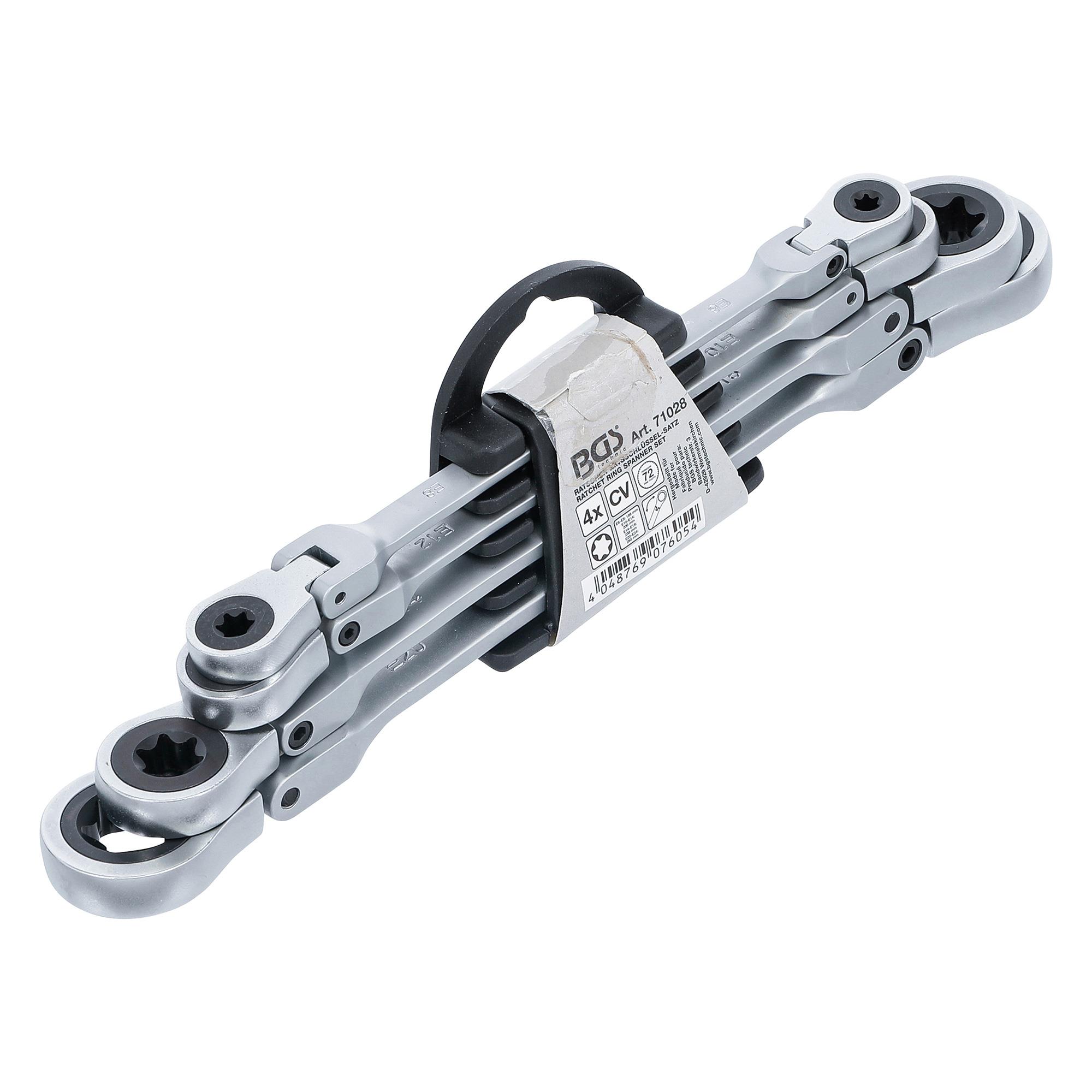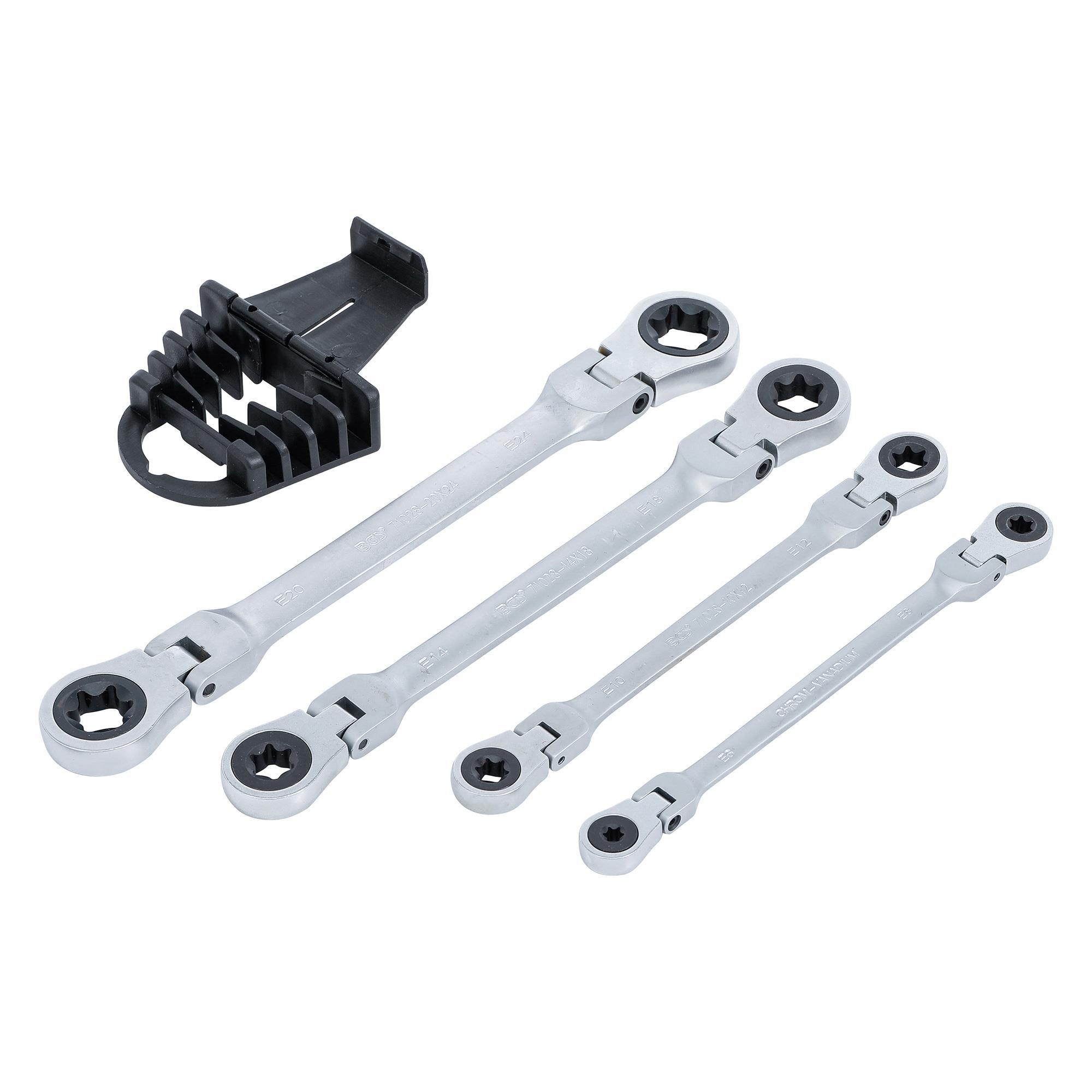 "Doppel-Ratschen-Ringschlüssel-Satz, abwinkelbar, mit E-Profil Ringköpfen, SW E6 - E24, 4-tlg"
