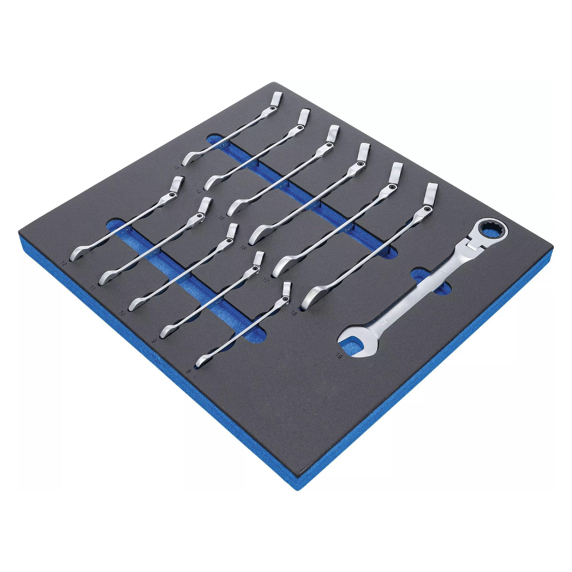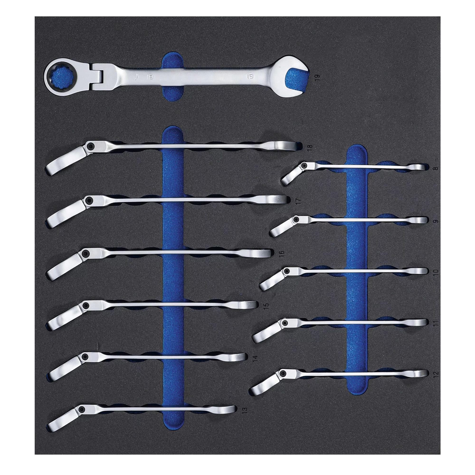 "Werkstattwageneinlage 2/3: Ratschenring-Maulschlüssel-Satz, abwinkelbar, SW 8 - 19 mm, 12-tlg"