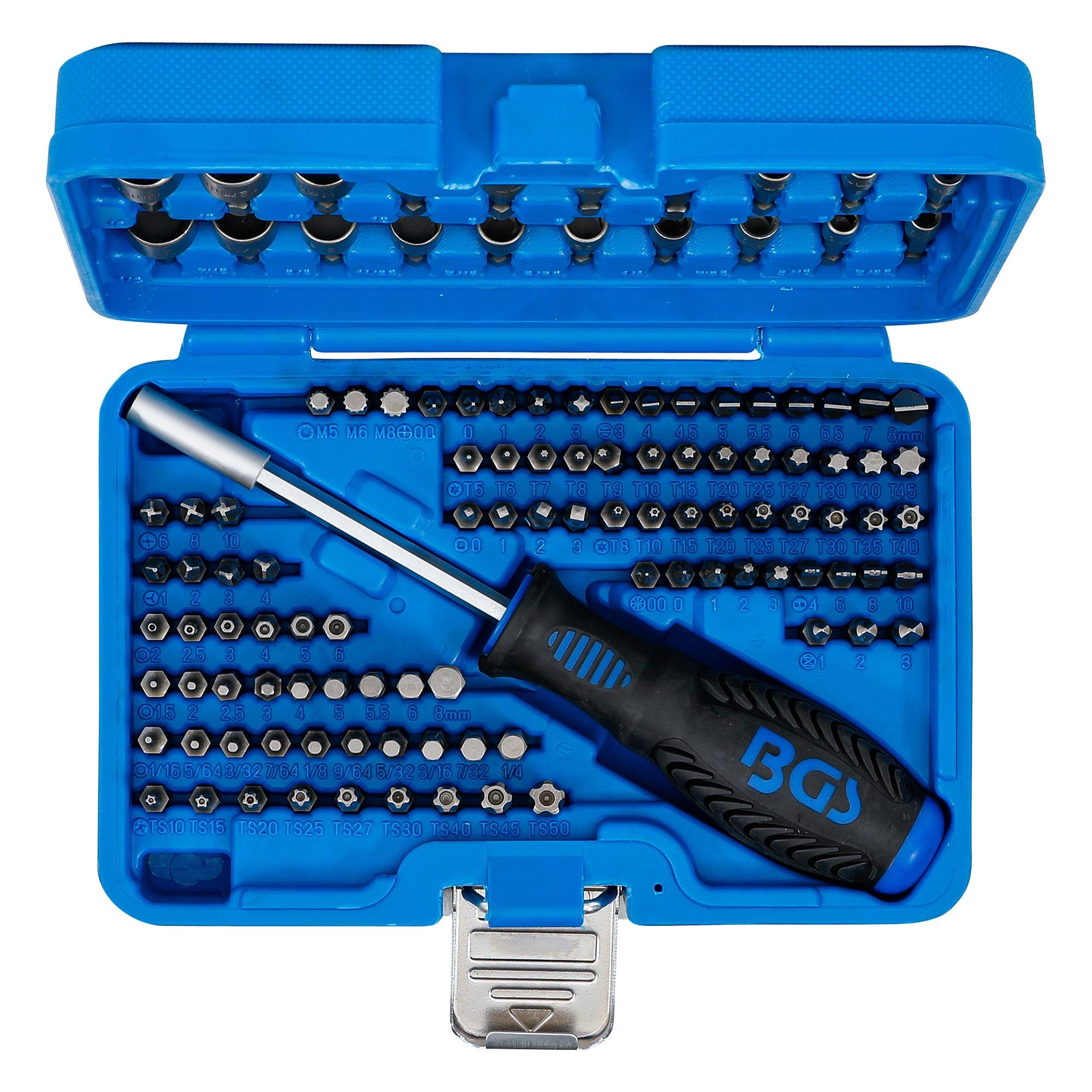 Universal- und Spezial-Bit-Set mit einem 200 mm Drehgriff mit Antirutsch-Beschichtung.