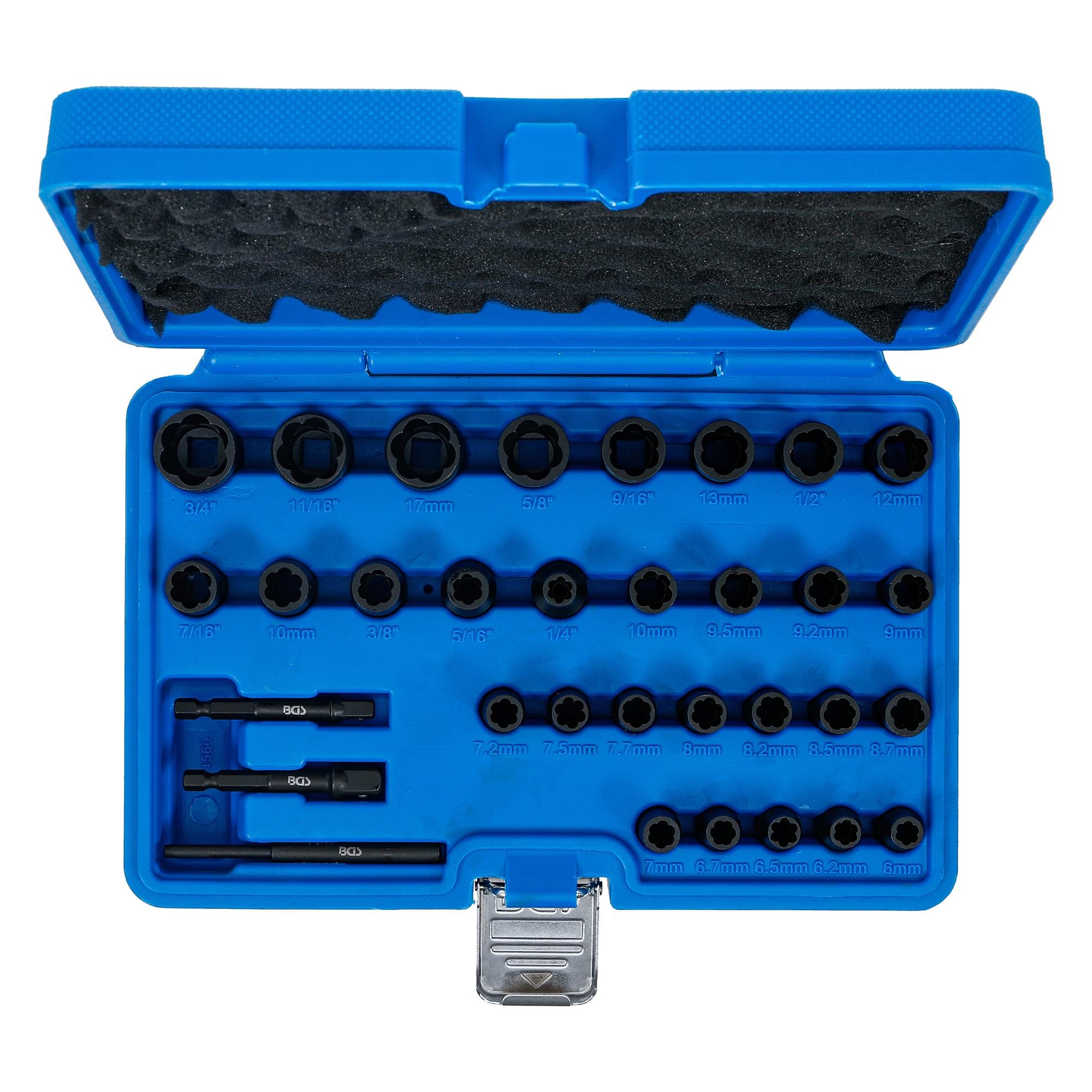 "Spiral- Steckschlüsselset, 1/4" 3/8", 32-tlg. für beschädigte Schrauben, 6-19mm, inkl.Zwischengrößen"