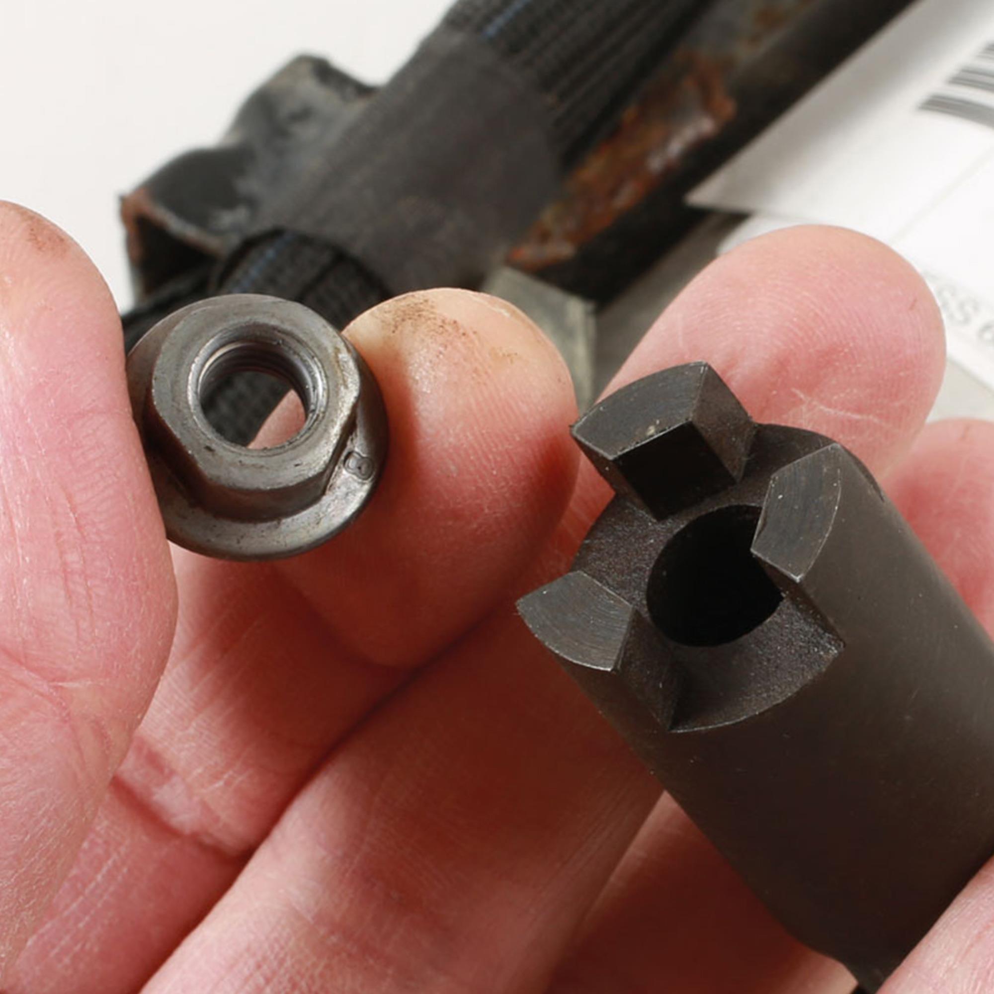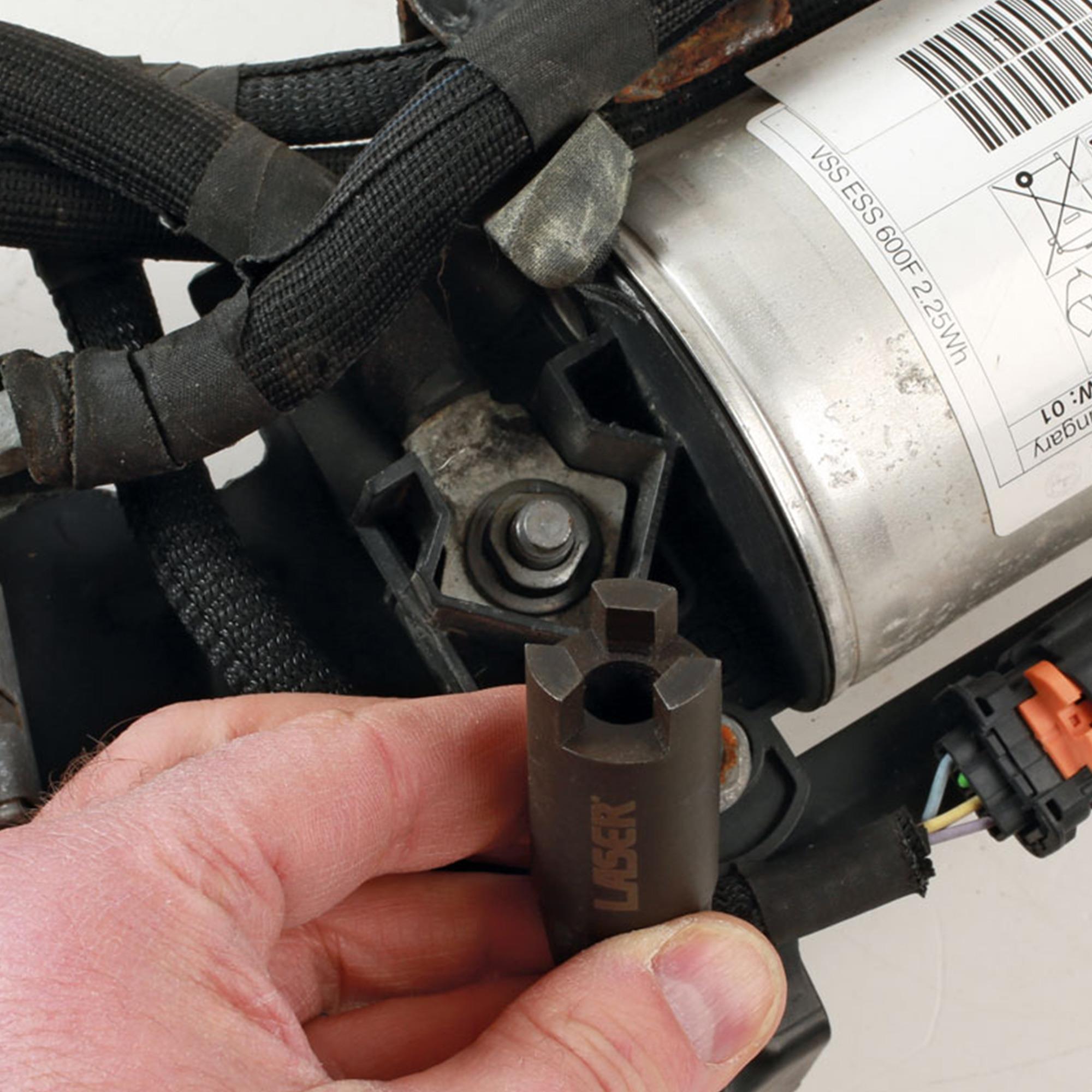 Spezieller 3-Kant-Steckschlüssel, zur De- und Montage des Hochvolt-Anschlusses der Start-Stopp-Kondensator-Verkabelung.