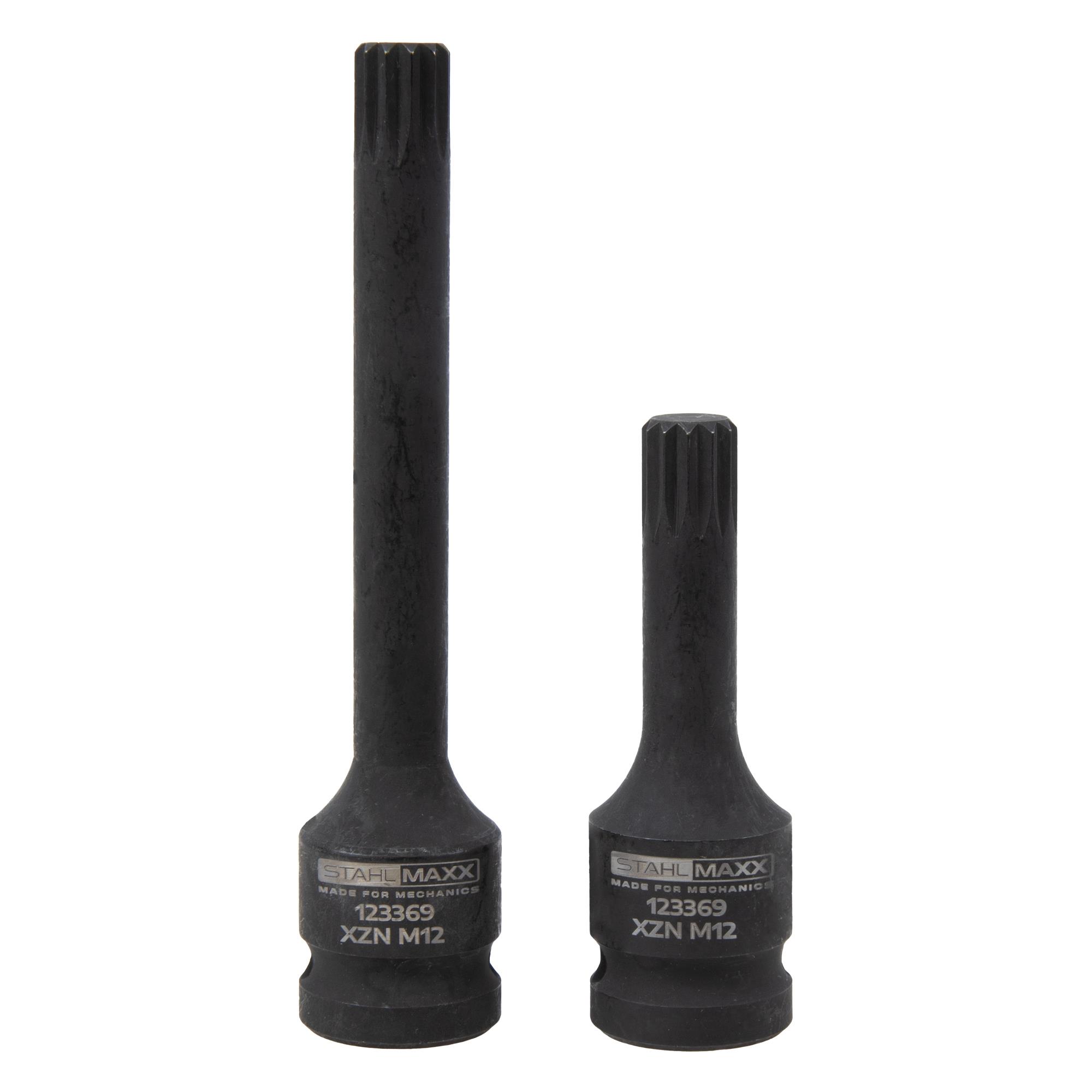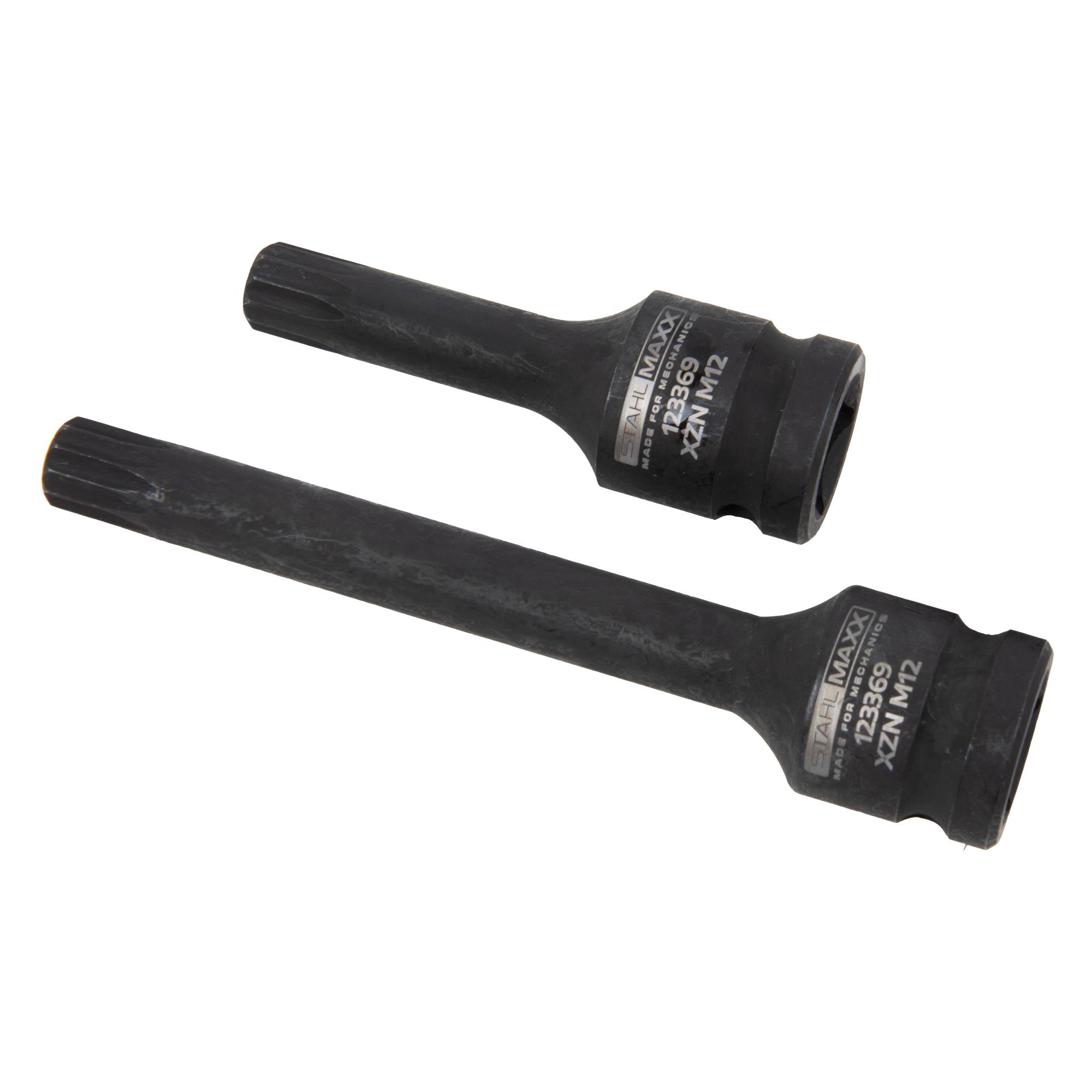 "Steckschlüssel, Vielzahn M12, CrMo, 1/2“ Länge 78 und 120 mm, 2-tlg., für Radlager, Bremssattel"