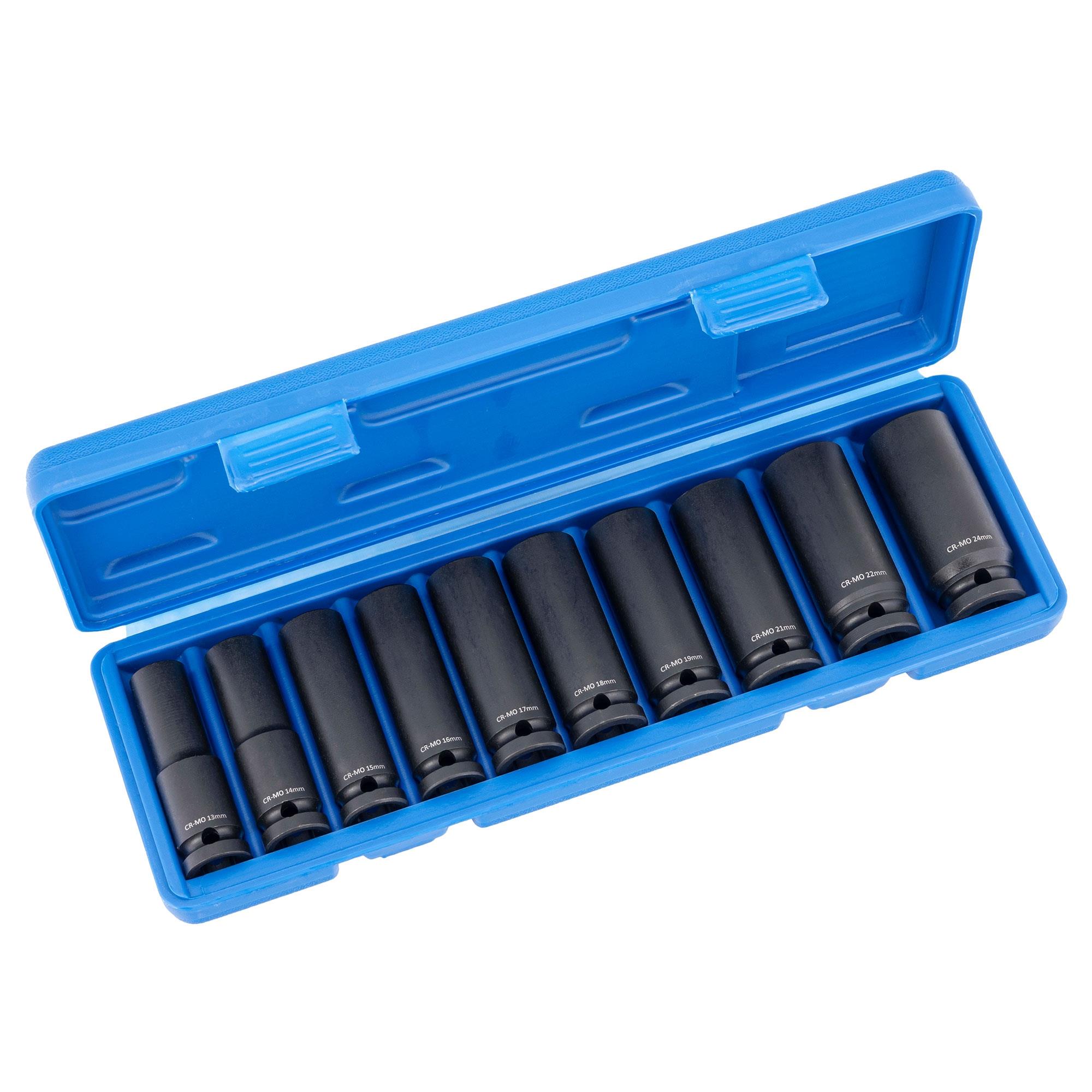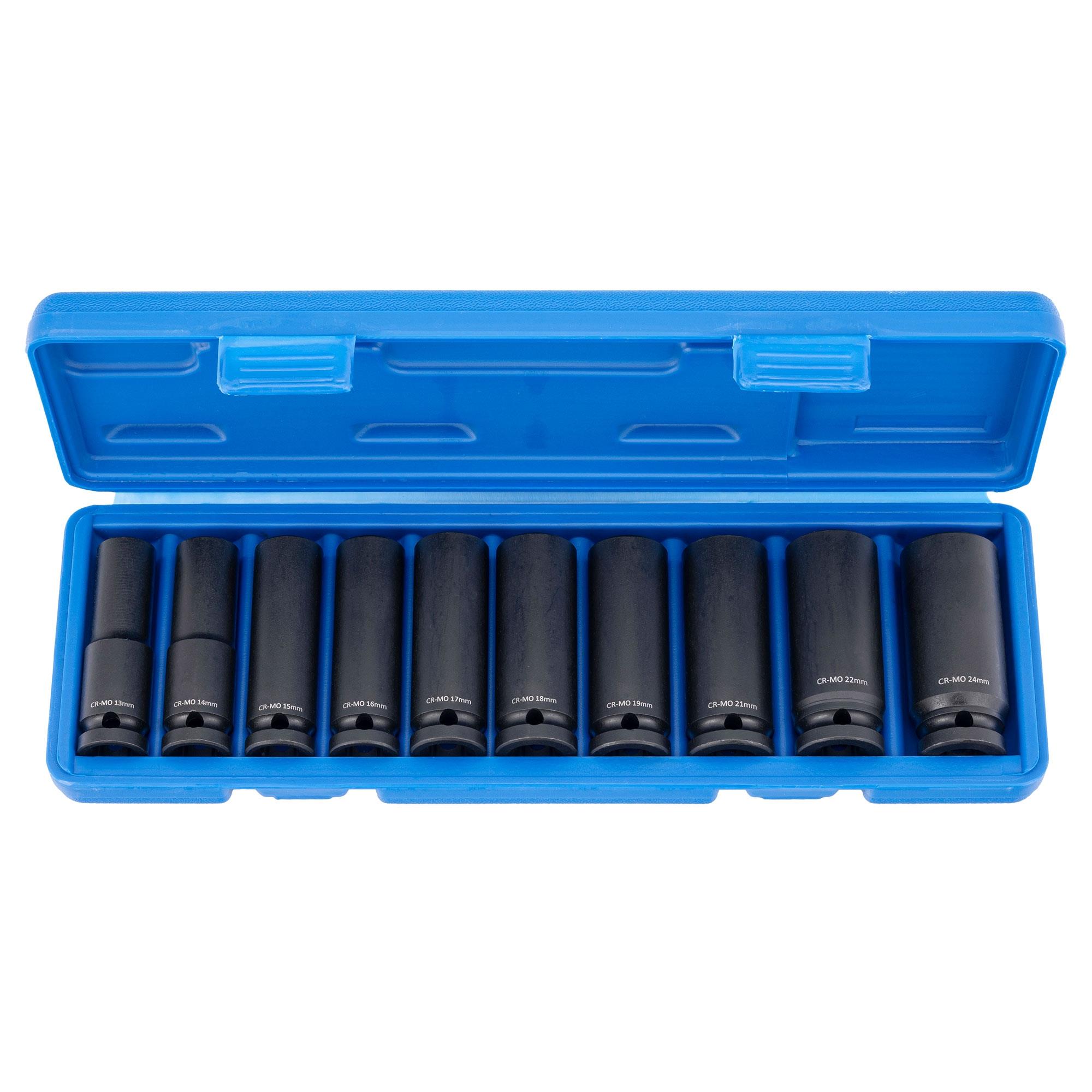 Kraft-Steckschlüssel-Satz, 6-kant, tiefe Ausführung 1/2", 13-24 mm, 10-tlg.