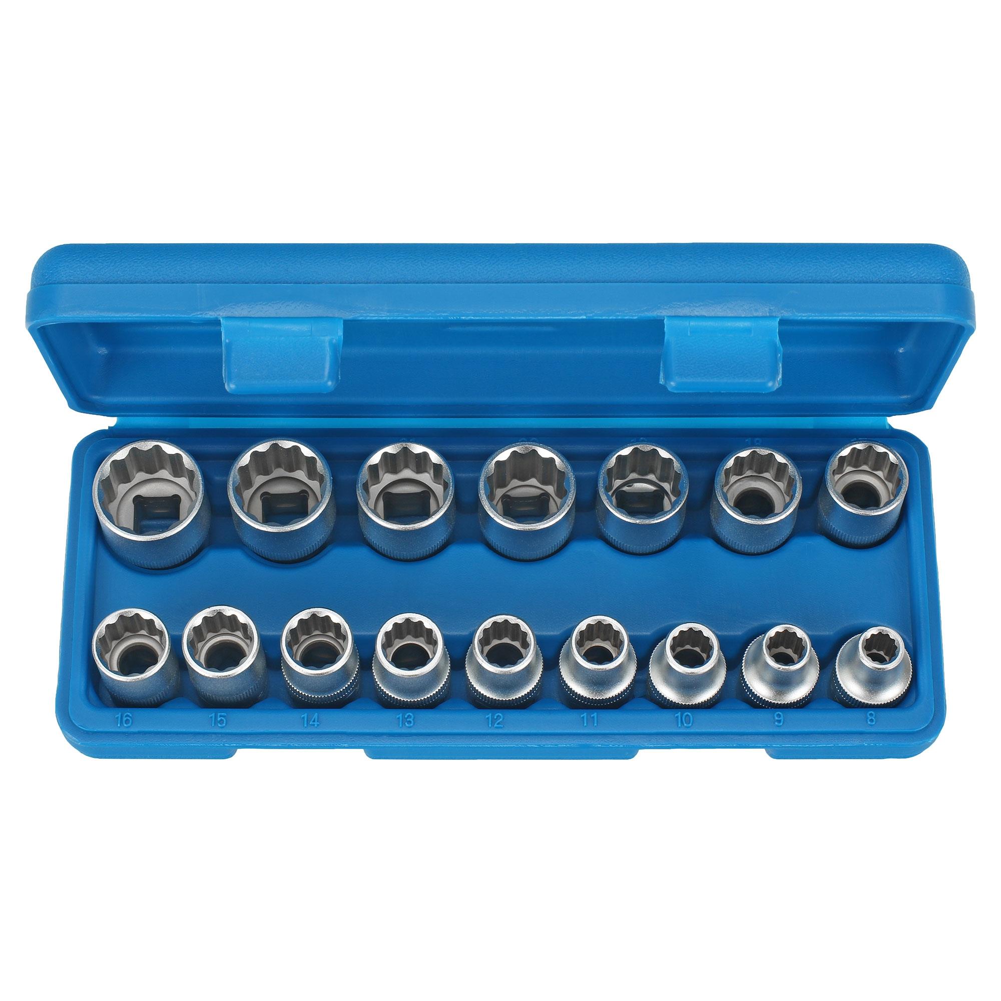 Steckschlüssel Einsätze, 12-kant / Vielzahn, 1/2", 8-24 mm, 16-tlg.