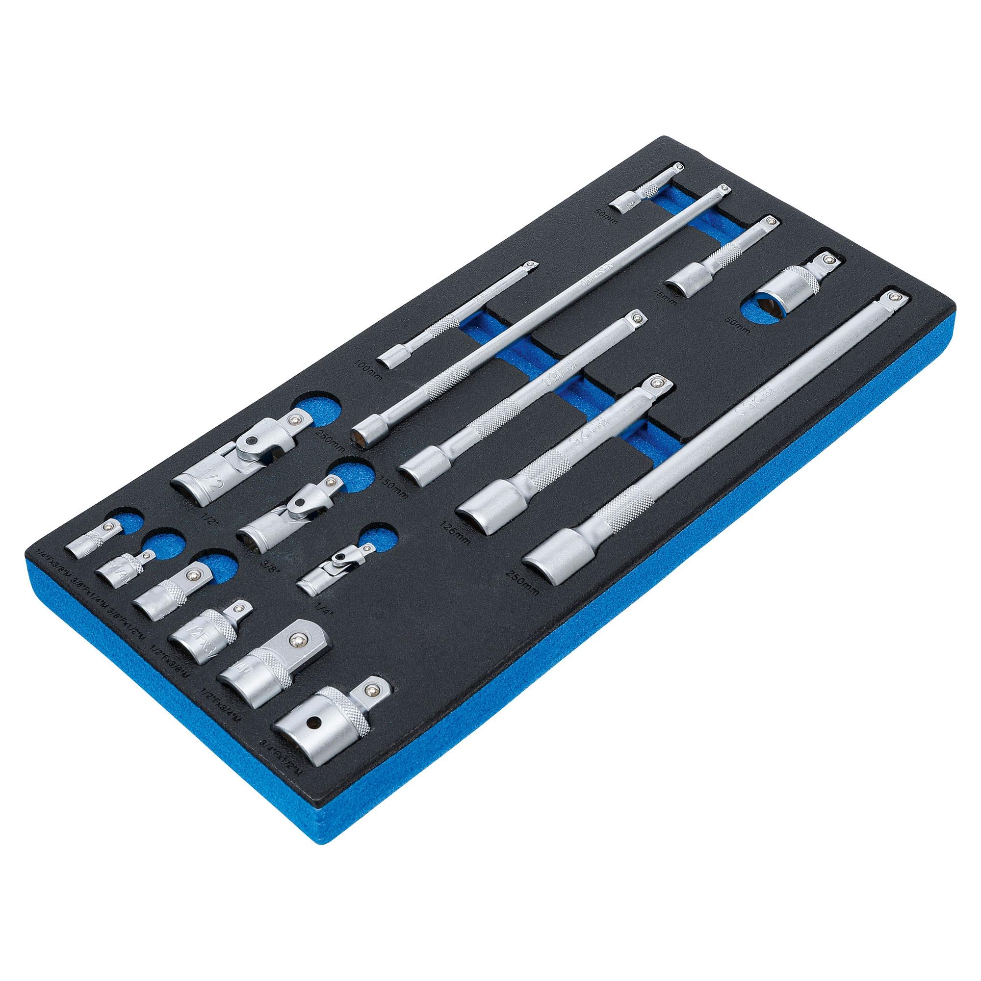 Verlängerungs-, Adapter- und Gelenk-Satz, 17-tlg., Werkstattwageneinlage 1/3