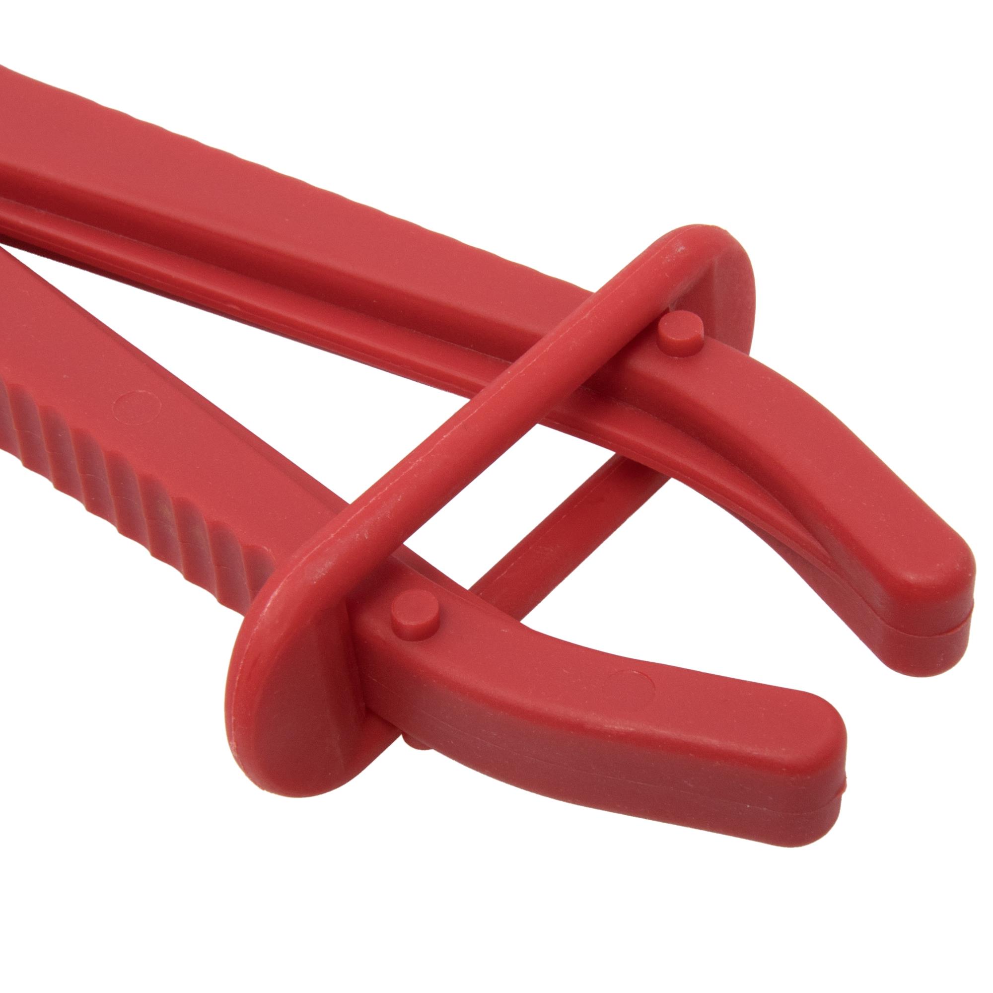 Die Abklemmzangen werden vor dem Öffnen des Systems an die Zu- oder Ablaufleitung angesetzt. Durch Zurückziehen der Arretierspange üben die Zangen genug Druck zum Abklemmen des Schlauches oder der Leitung aus.