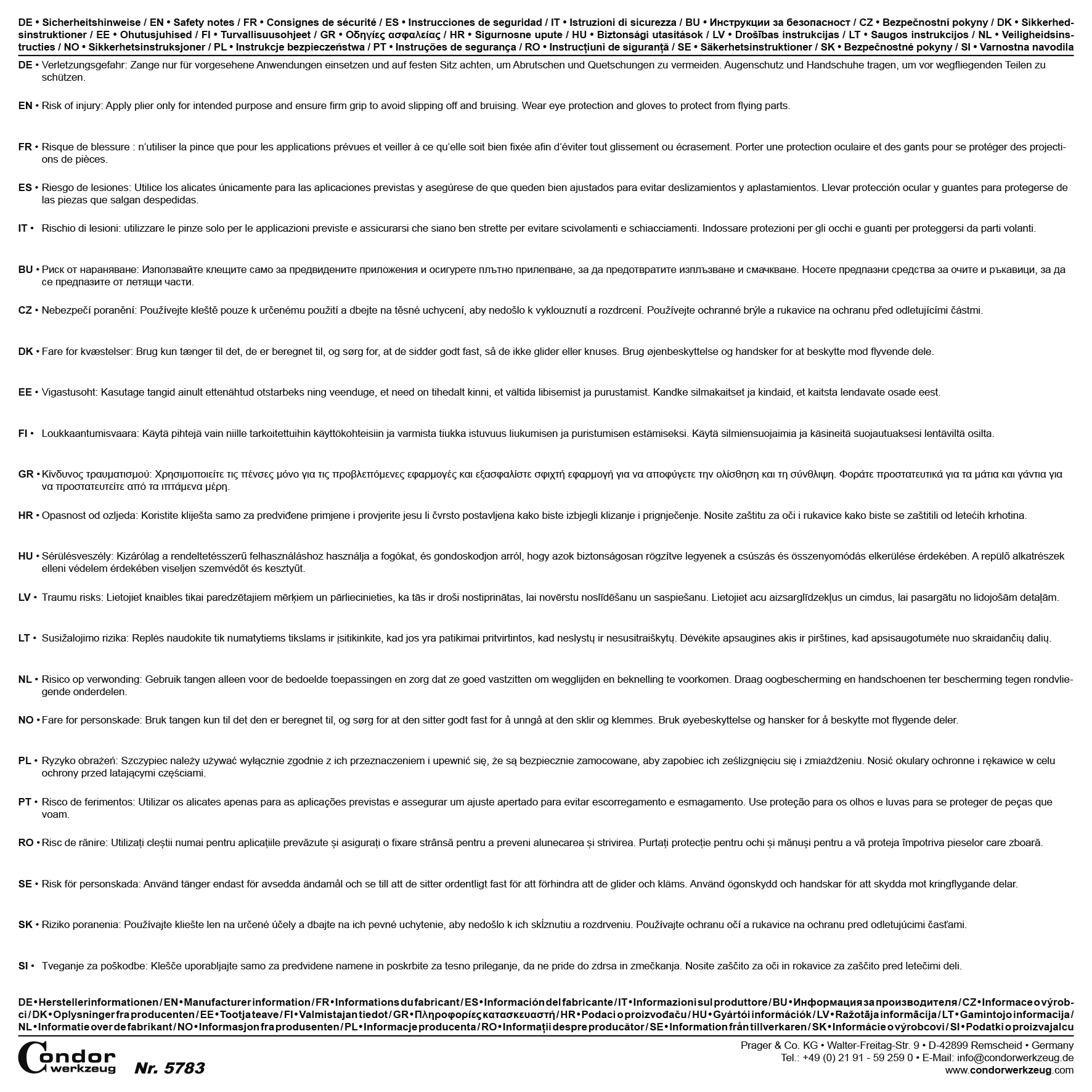 Verantwortliche Person für die EU: Prager & Co. KG |