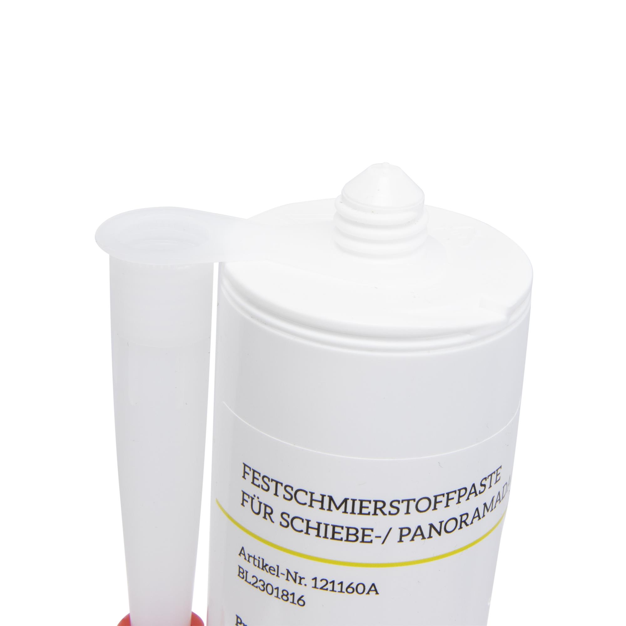 Schiebedächer und Panoramadächer müssen in regelmässigen Abständen gewartet, gereinigt und geschmiert werden. Je nach Ausführung der Gleit- und Führungsschienen sind entweder unsere Fettsteine Art.-Nr. 118701 und 118702 vorgesehen und / oder aber auch die Verwendung von einem fusselfreien Lappen und einem Pinsel.