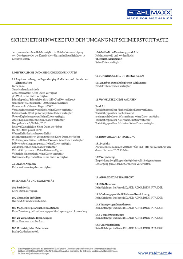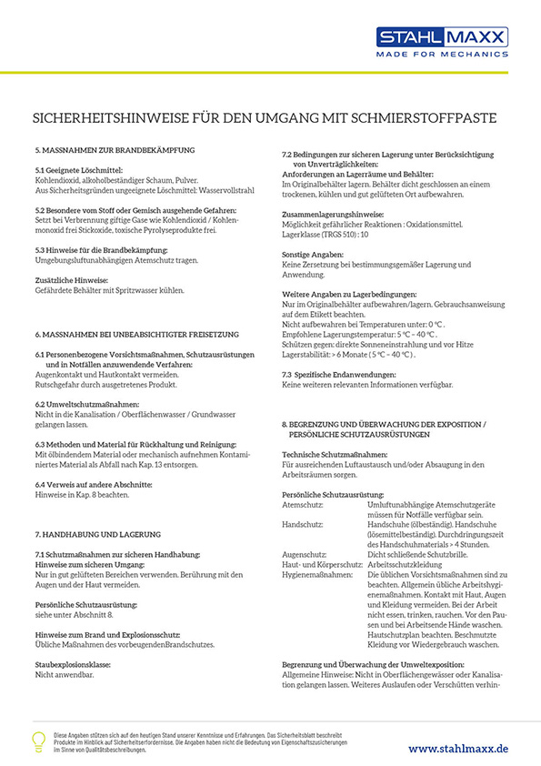 - Antistatisch, nach Ablüften nimmt das Fett nur schwer Schmutz auf