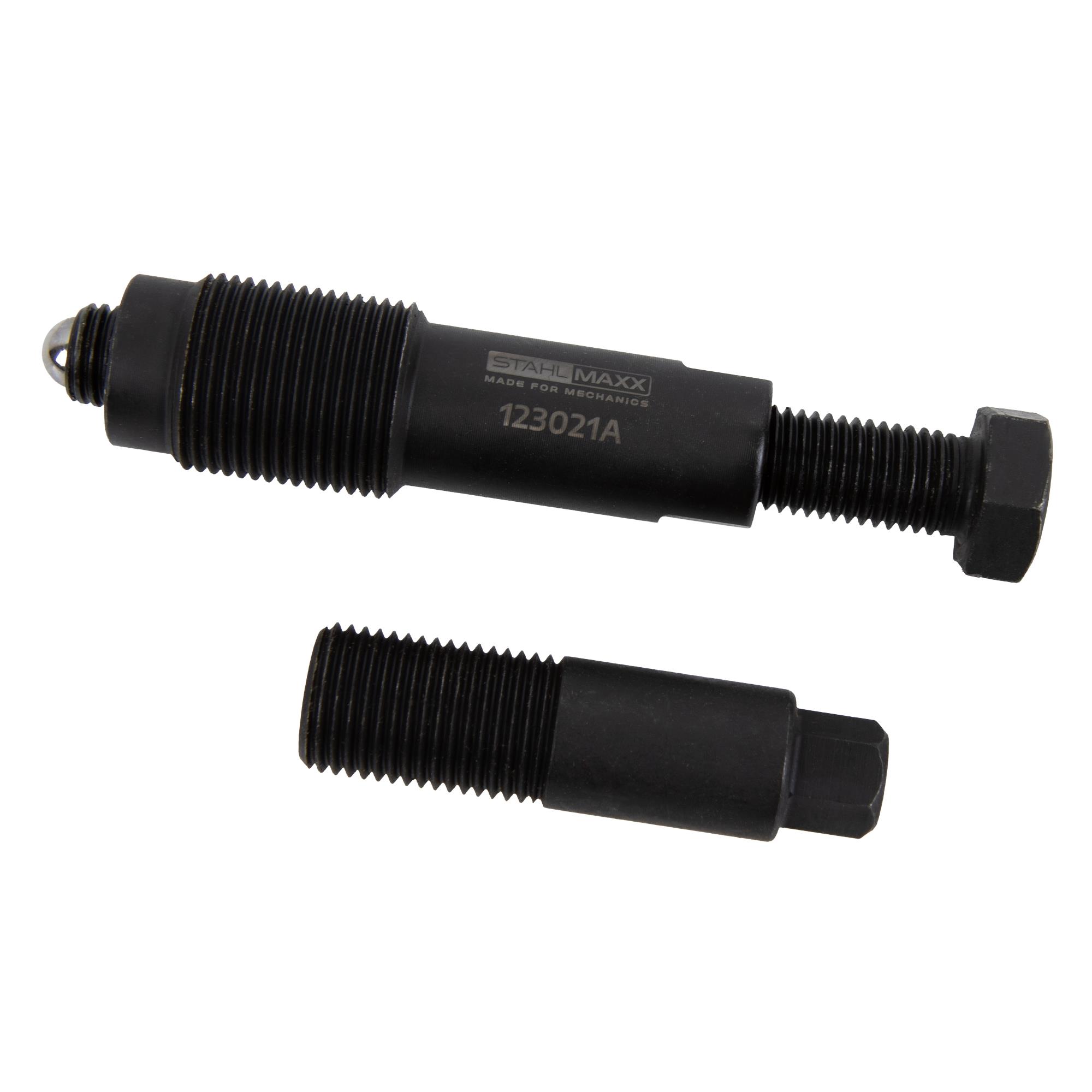 Spezialwerkzeug zum Abziehen der Kurbelwellen-Riemenscheibe, bzw. zur Demontage des Schwingungsdämpfers an Ford 2.0L EcoBlue Motoren (ab 2019) mit einem Innengewinde in der Riemenscheibe.