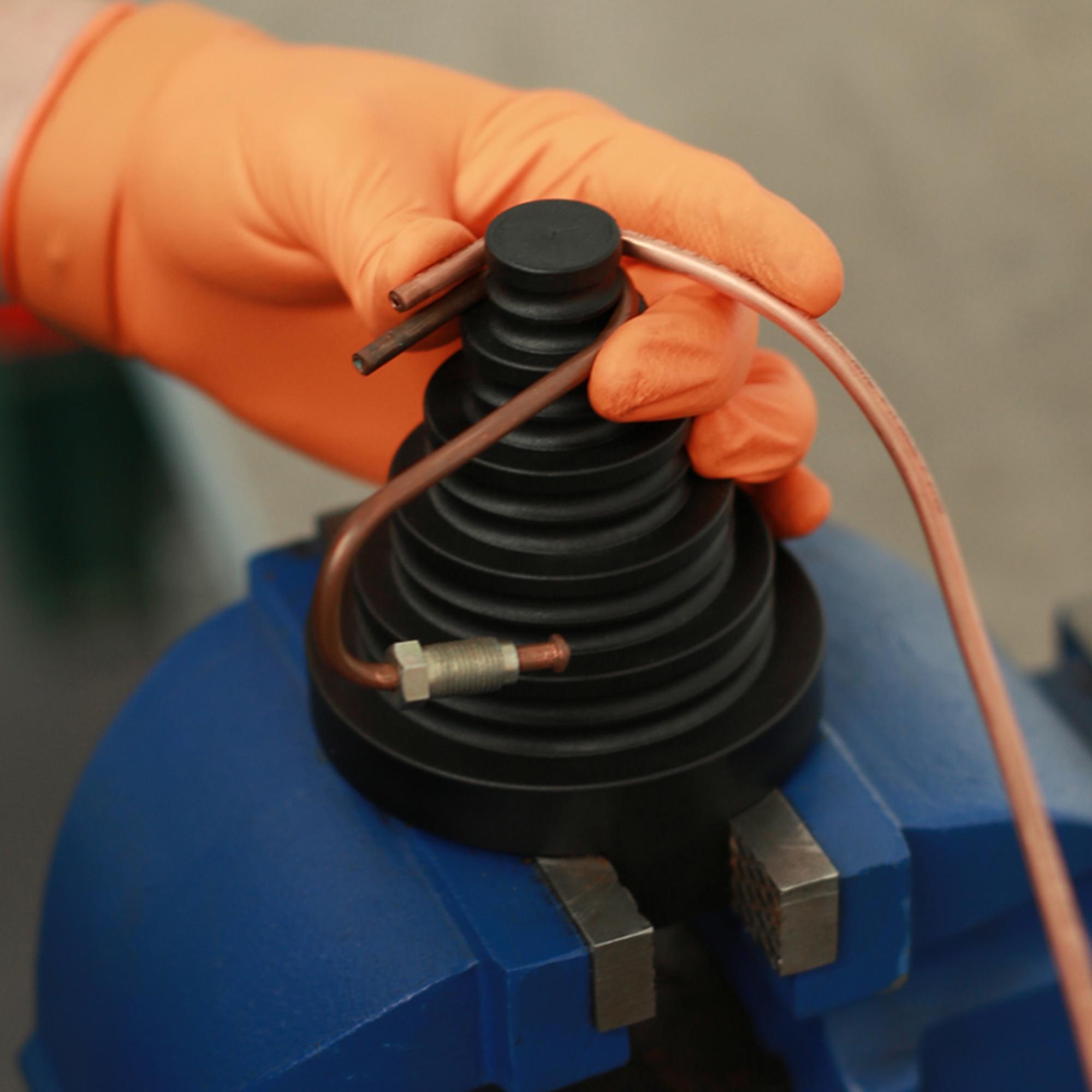 Hiermit lassen sich Rohre und Leitungen mit 4,75 mm (3/16") bis zu 6 mm (1/4") schnell, einfach und präzise per Handkraft in den gewünschten Radien biegen, ohne diese zu knicken oder die Kunststoffummantelung zu beschädigen.