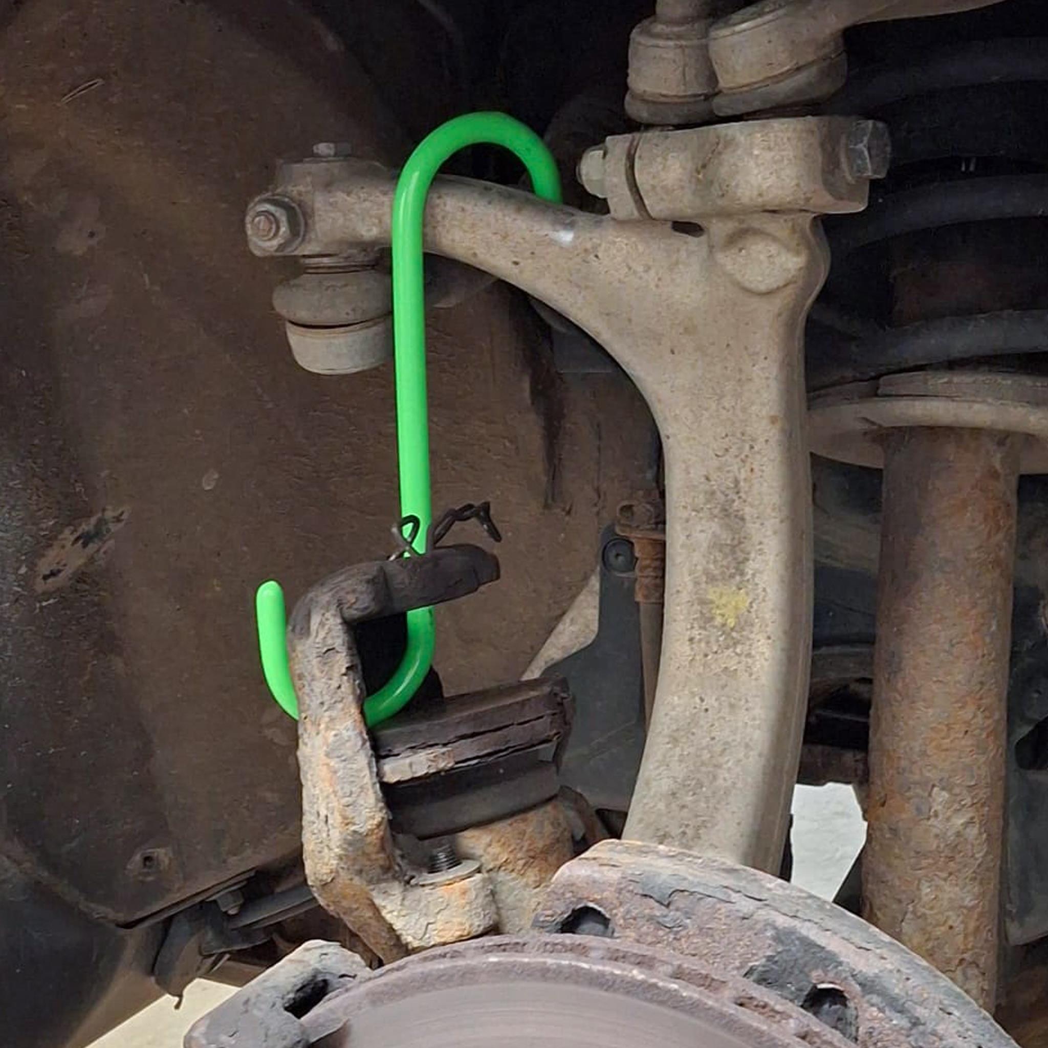 Mit diesen, auch universell verwendbaren, S-Haken können neben Bremssätteln auch schwerere Fahrzeugteile fixiert werden, ohne dass Schläuche, Leitungen oder Befestigungen unnötig belastet werden. Die robuste Verarbeitung sorgt für einen sicheren Halt und eine lange Lebensdauer.