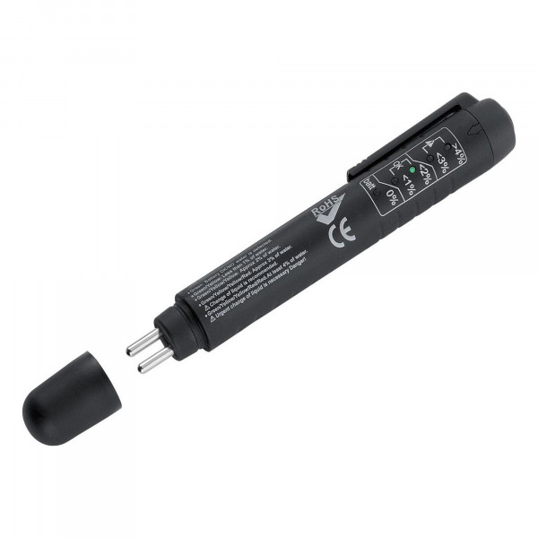 - Bremsflüssigkeitstester (Länge ca. 150mm, Durchmesser ca. 20mm) mit Schutzkappe zum Schutz der beiden Elektroden