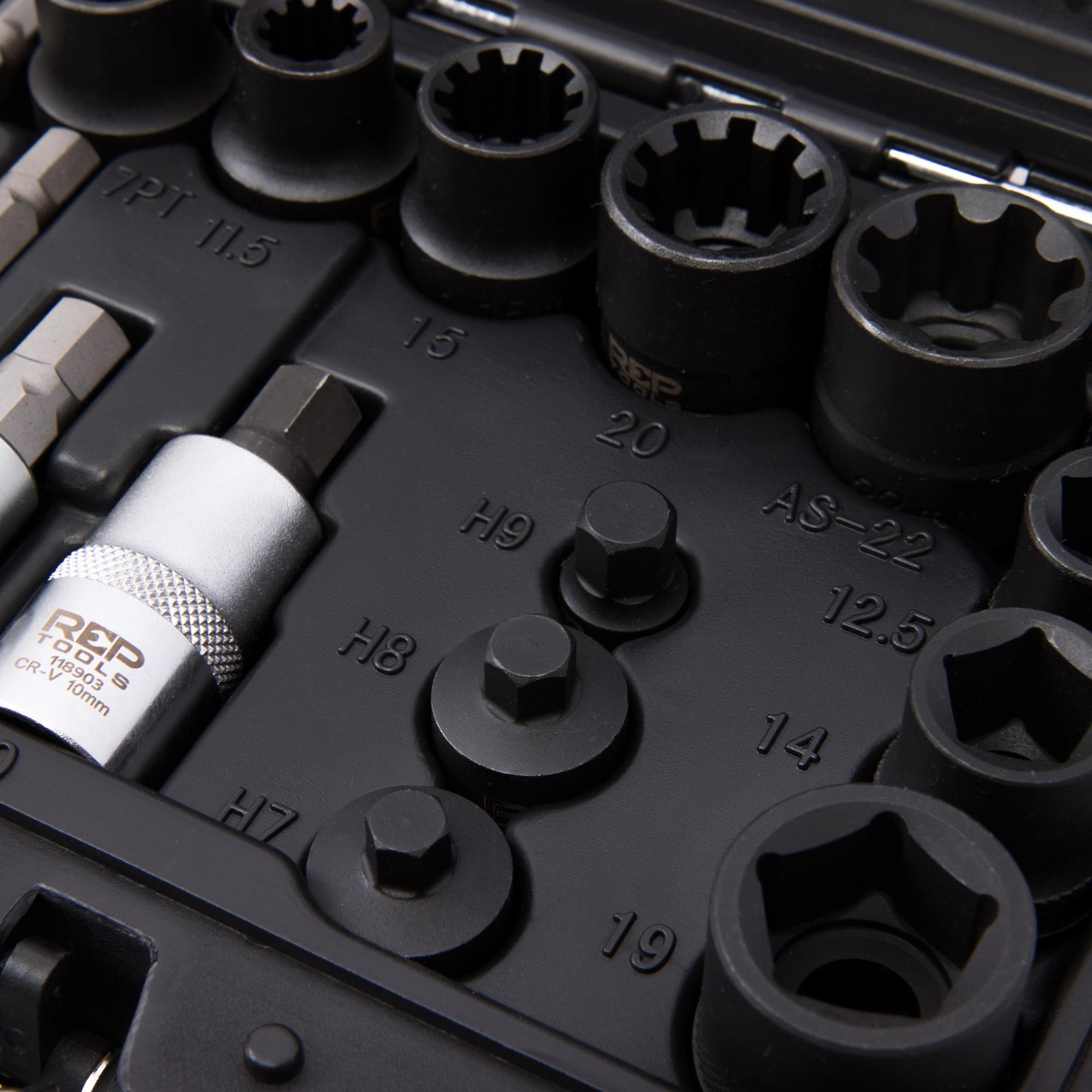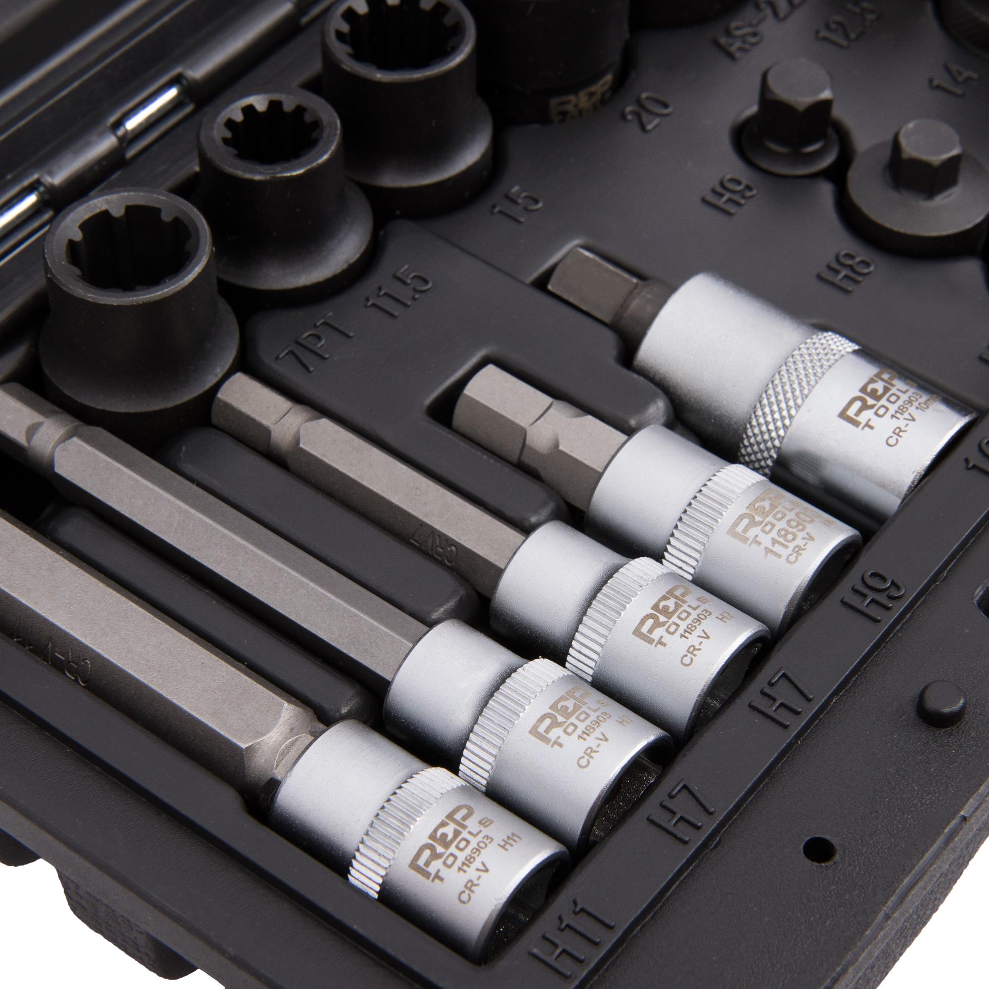 Die im Lieferumfang befindlichen Längen und Antriebsgrößen ermöglichen die beste Erreichbarkeit der Schrauben, Führungen und Bolzen.