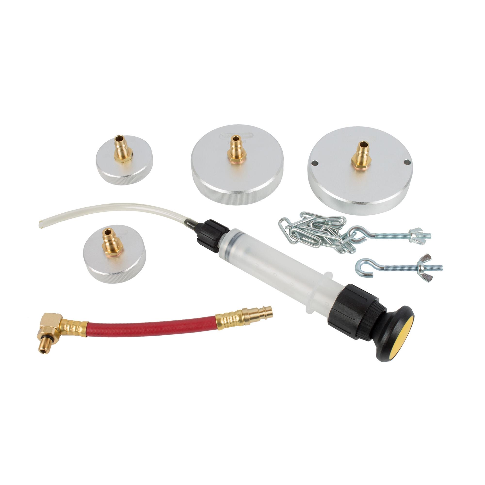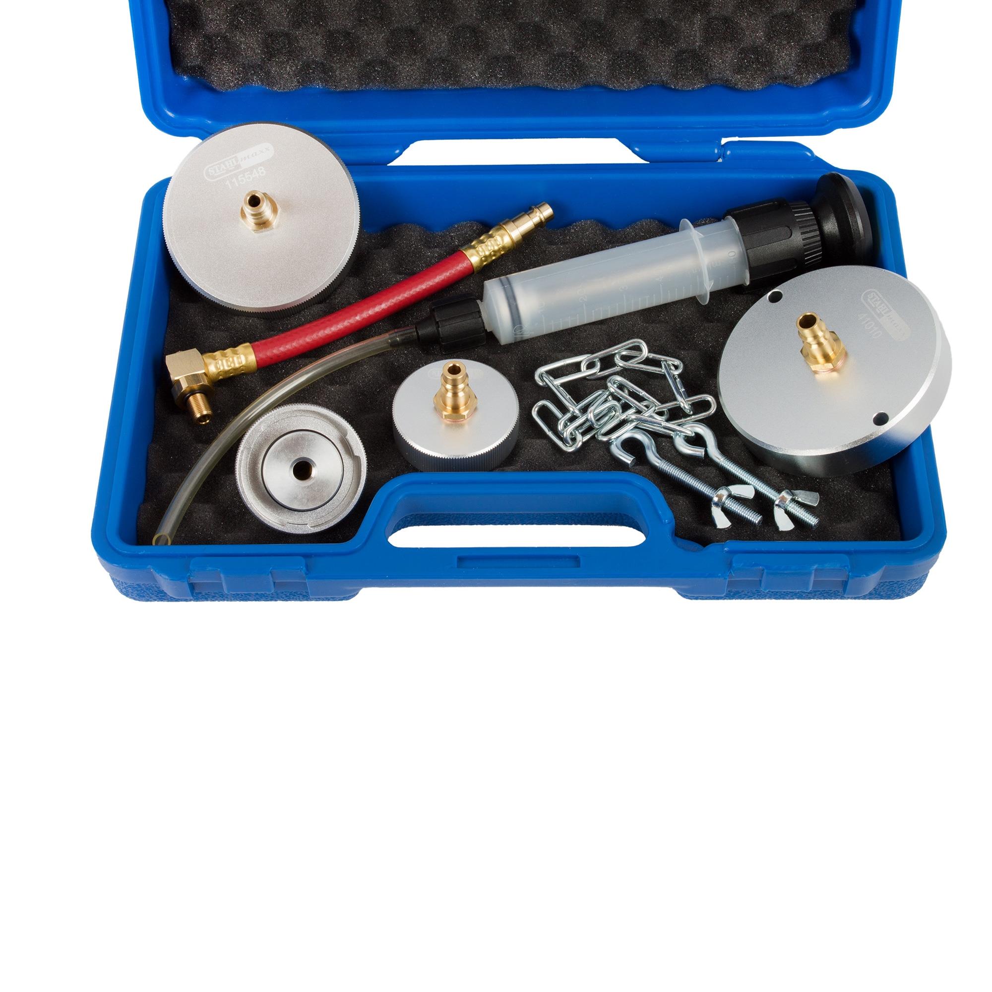 - Verschiedene Adaper für die Bremsflüssigkeit Ausgleichsbehälter vieler Fahrzeugmodelle für den Einsatz mit unseren Bremsentlüftungsgeräten.