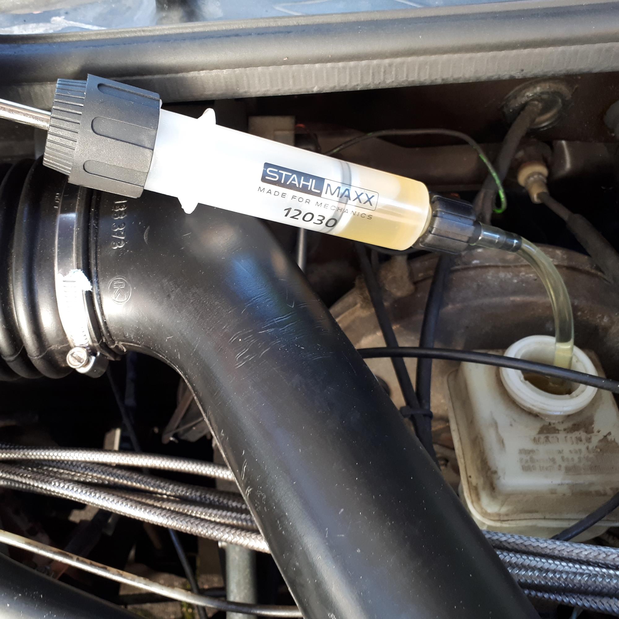 Mit der Absaugspritze kann die alte Bremsflüssigkeit aus dem Ausgleichsbehälter einfach und sauber abgesaugt und Überfüllungen können schnell behoben werden.