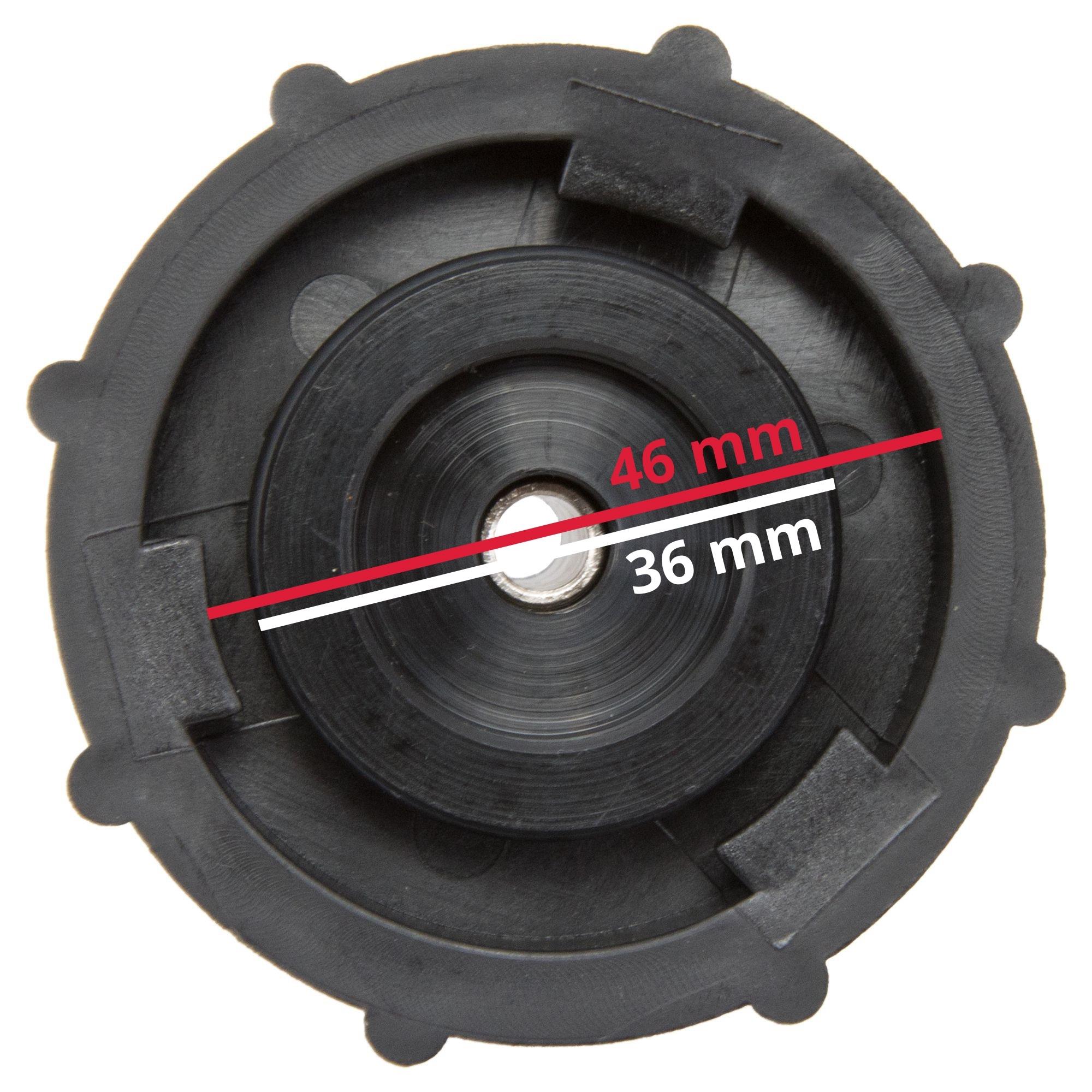 Nur passend bei Ausgleichsbehältern mit Bajonettverschluss und einem Hals-Innenmaß von Ø 36 mm. Bitte vergleichen Sie zuvor das Innenmaß des Ausgleichsbehälters und den Zapfenabstand mit unserem Bemaßungsbild.