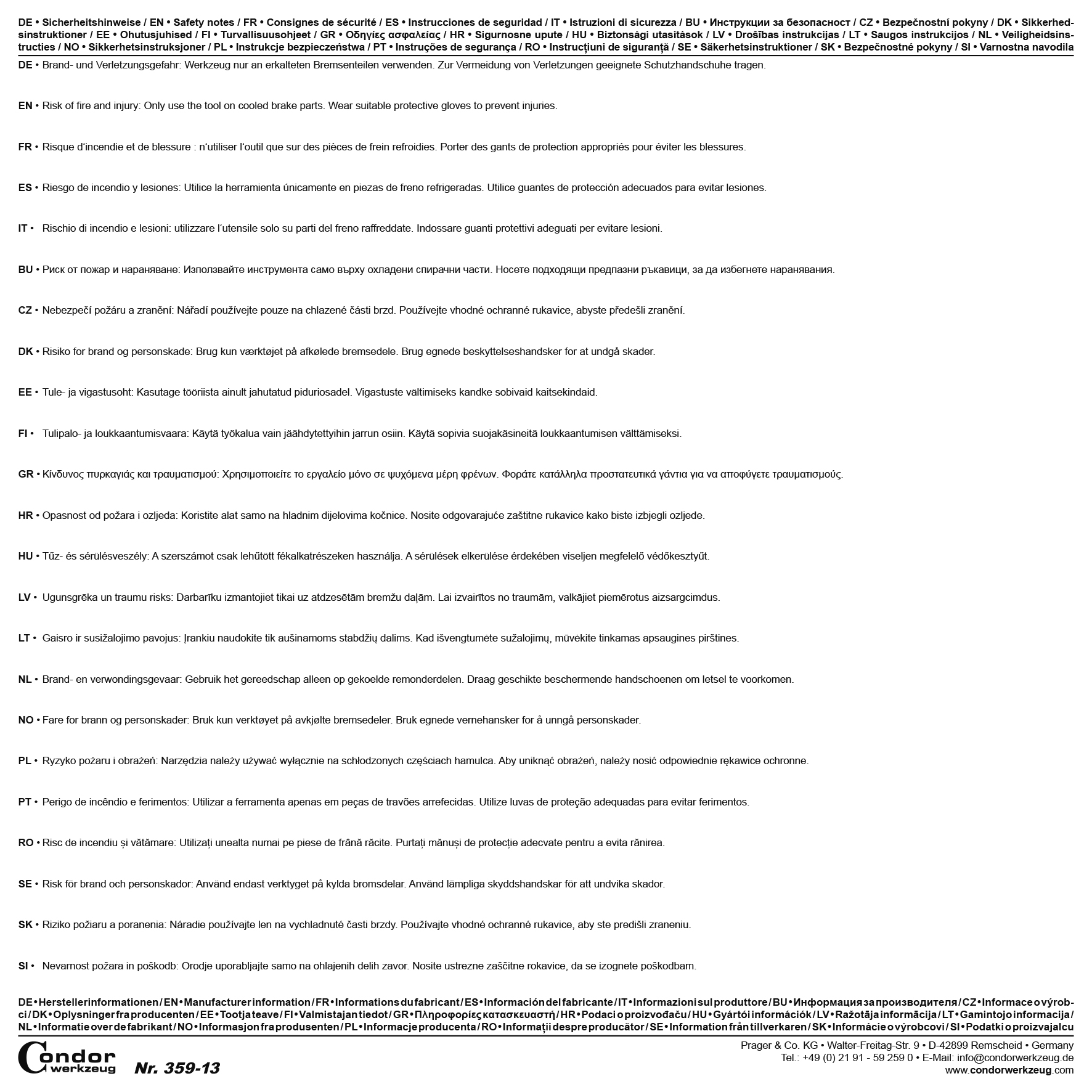 Verantwortliche Person für die EU: Prager & Co. KG |