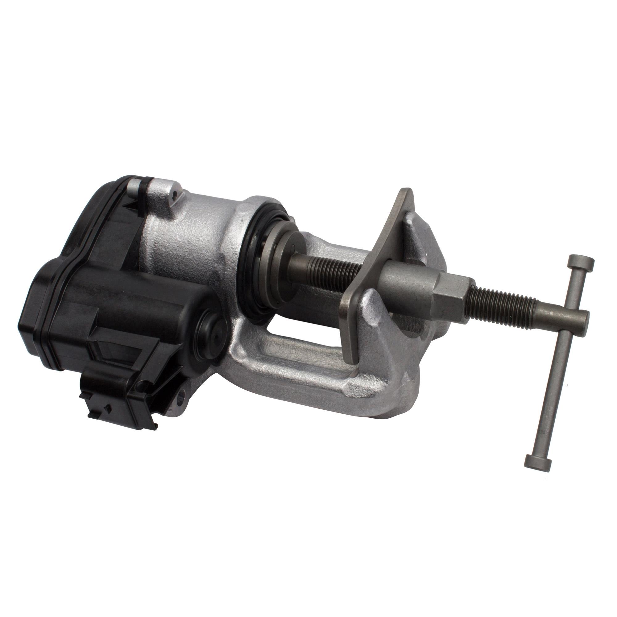 Dieses Werkzeug benötigen Sie zum Austausch der Bremsklötze an einer Scheibenbremsanlage mit integrierter Handbremse am Bremssattel. Der Werkzeugsatz ermöglicht ein Zurückdrehen der hinteren und ein Zurückdrücken der vorderen Kolben im Bremssattel. Dadurch können die neuen Bremsklötze ohne ein Beschädigen der Feststellbrems-Mechanik und der Manschetten eingesetzt werden.