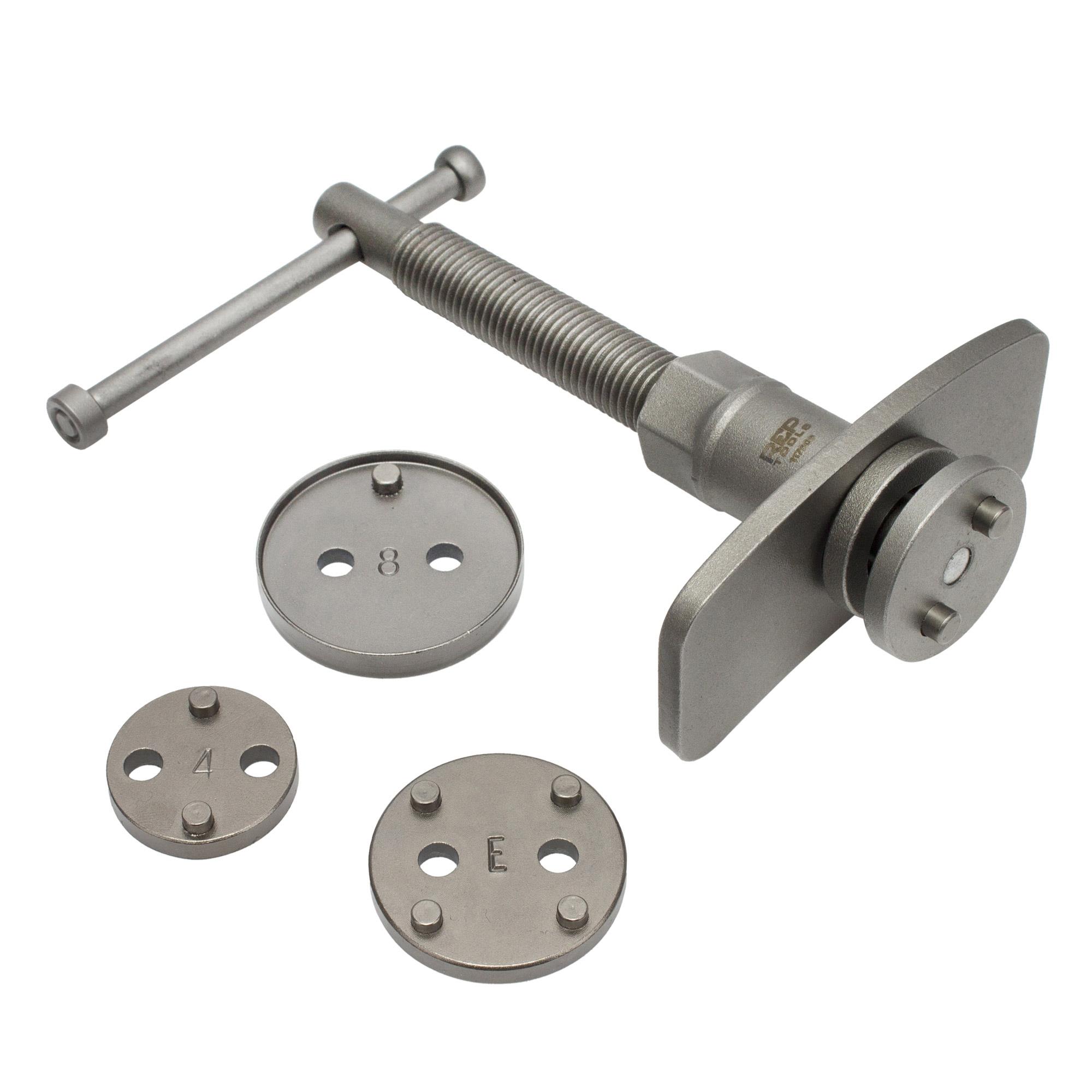 Dieses Set ist vor allem für Bremssättel mit integrierte Handbremse gedacht. Ein passender Adapter zum Zurückdrücken ist für Ihr Fahrzeug dabei.